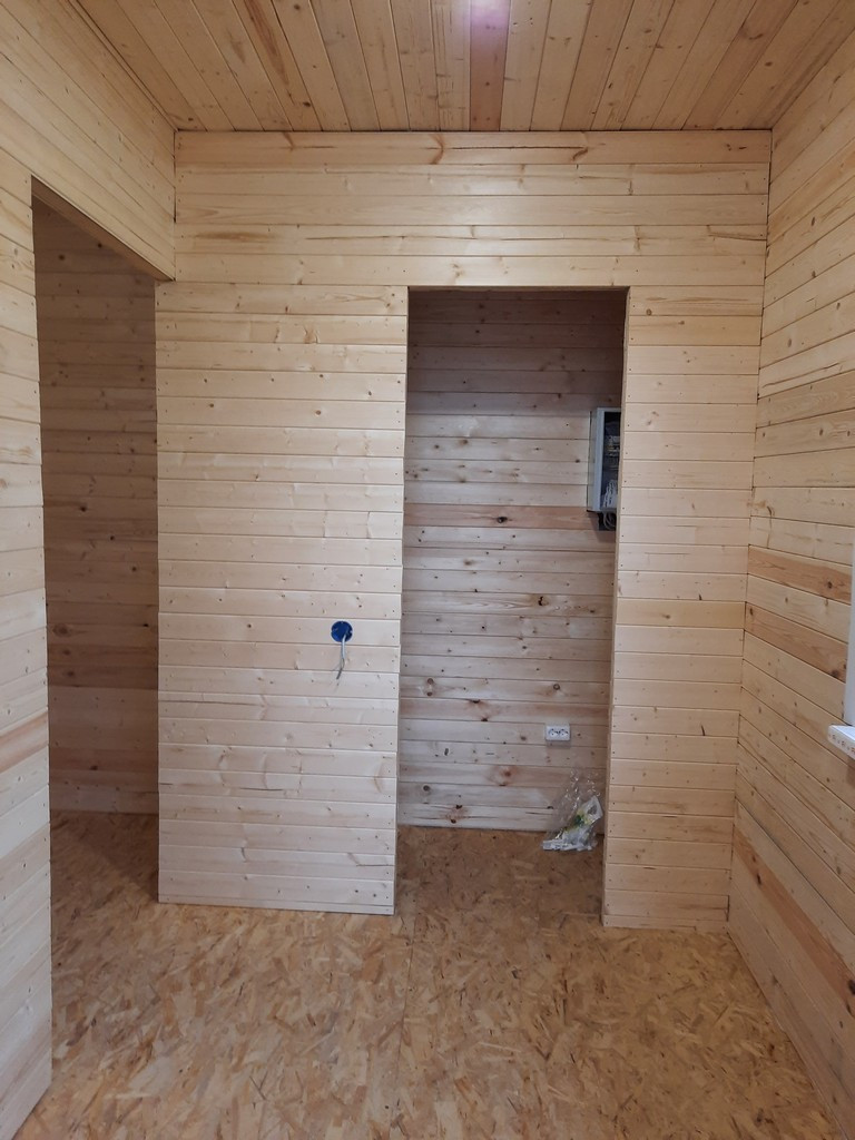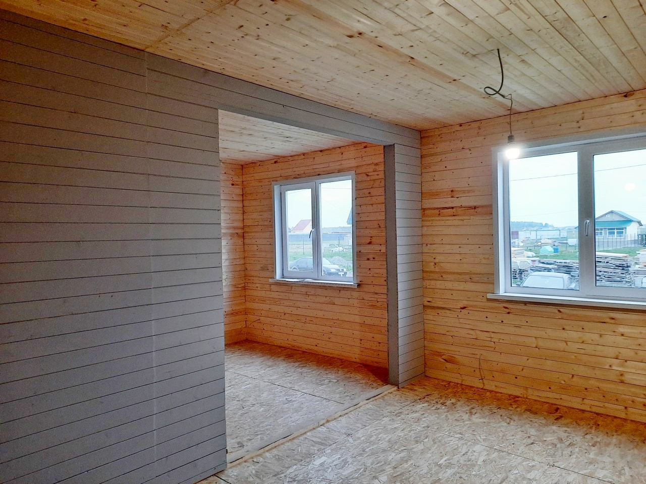 - Внутри дом обшит евровагонкой Штиль