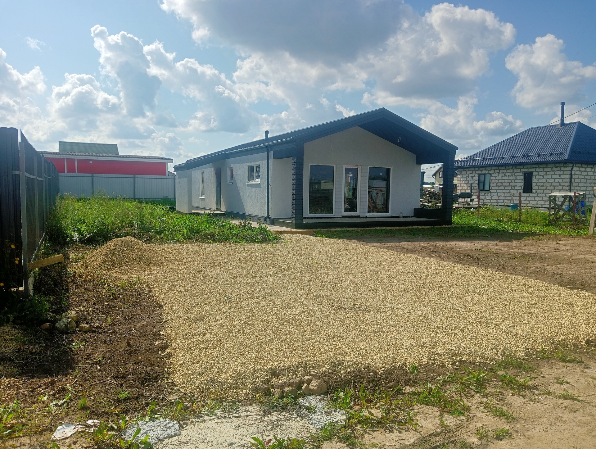 Материал стен полистеролбетонные блоки (бетонные блоки с добавлением полистерольных шариков). Кровля кликфальцевая. Фундамент монолитная бетонная плита.