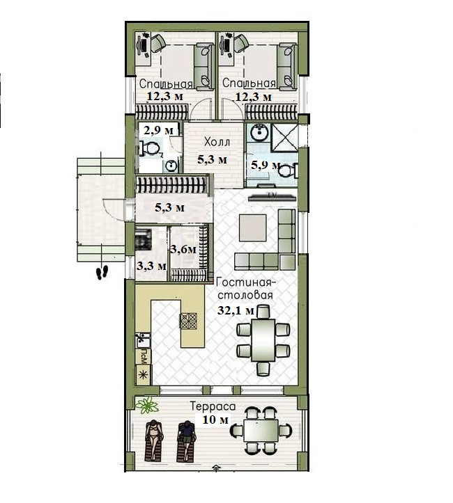 Общая площадь 101.5 м2