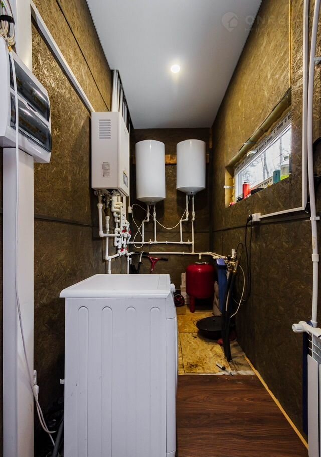 - Отопление электрический котёл с подключением к умному дому, теплый пол с терморегулятором в ванной комнате, так же два больших водонагревателя.