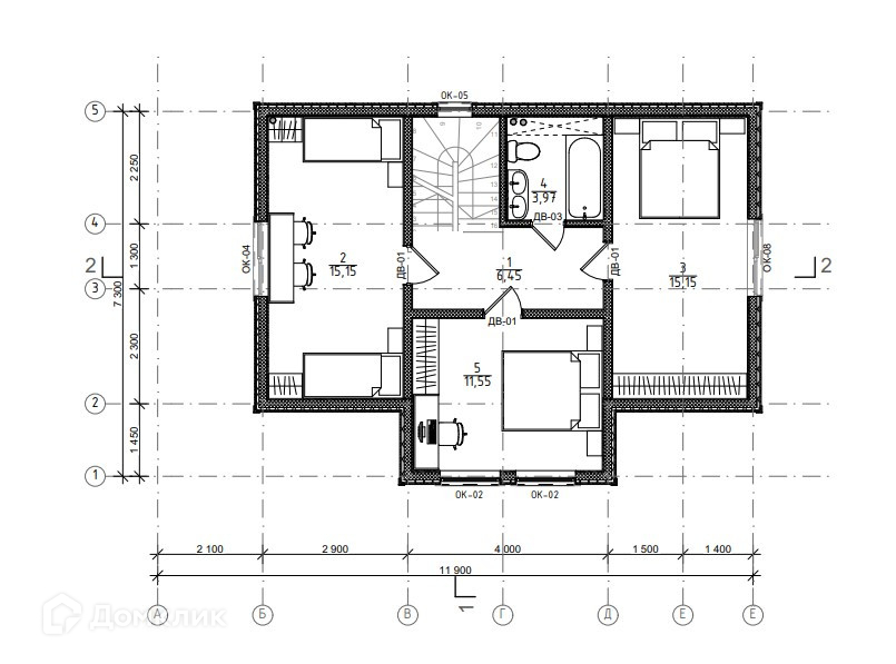 Второй этаж: отдельные 3 спальни.