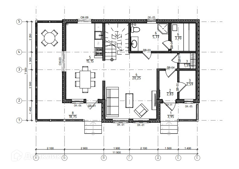 Первый этаж: просторная кухня с выходом на терассу, гостиная, просторный с/у с сауной, тех.помещение.