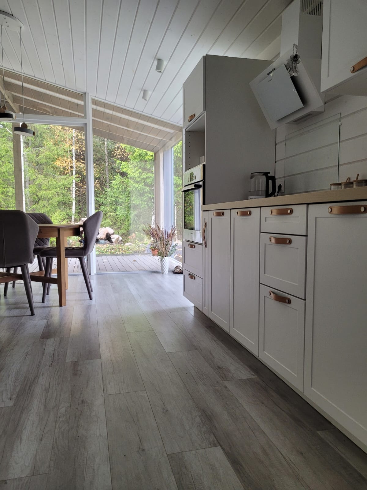 ☘️Стоит кухня (ящики с доводчиками), вытяжка, электроплита,холодильник, посудомоечная машина, духовой шкаф.