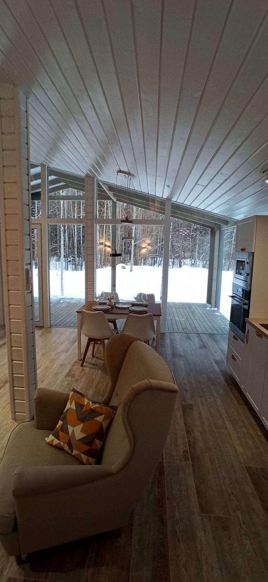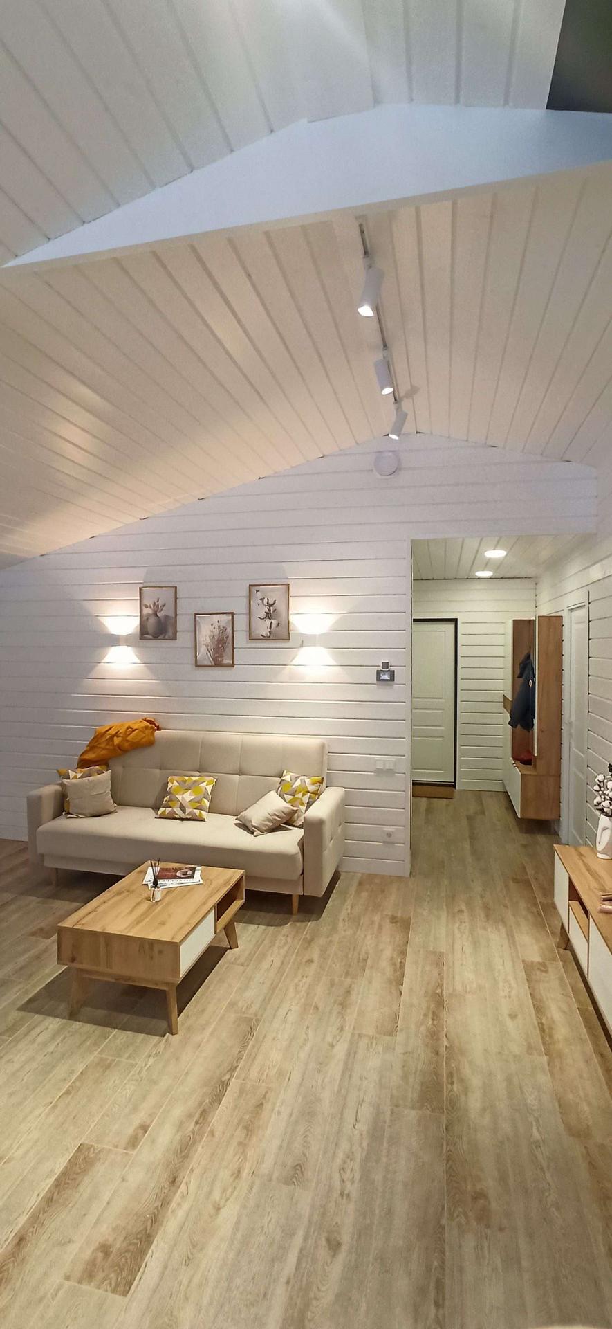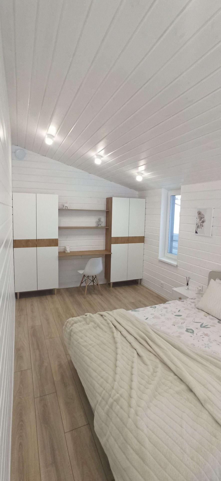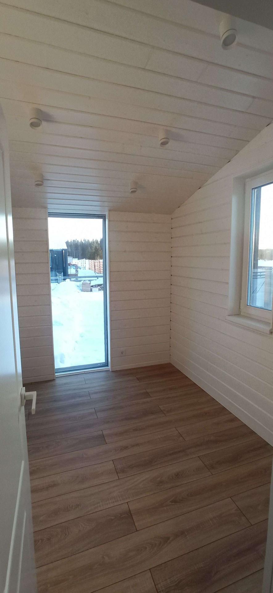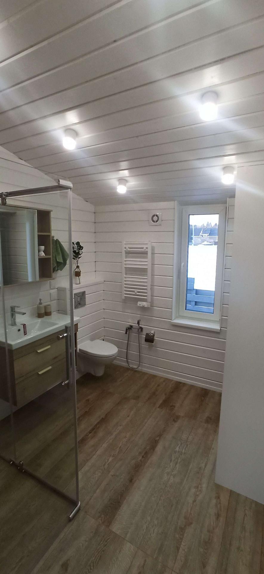 ✅ Внутренняя отделка выполнена имитацией бруса 145*21мм, пол - ламинат 33 класс в комнатах, в коридоре, с.у. и гостинной керамогранит.