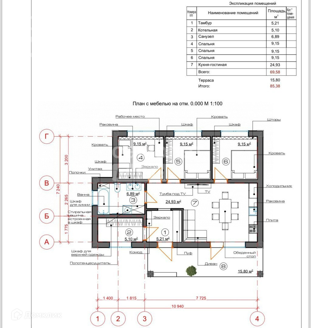 Общая площадь 70 м2