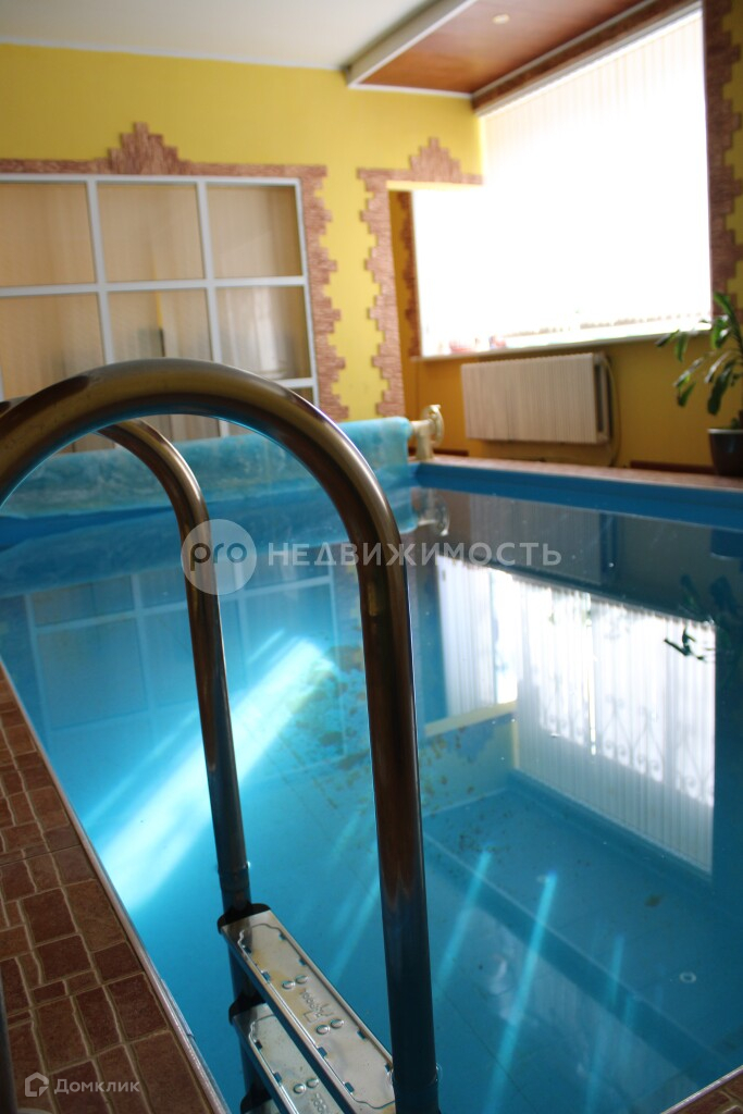 В доме также имеется внутренний бассейн размером 3 на 5 метров с гидромассажем и противотоком. Для поддержания тепла и уюта предусмотрена сауна с электрической печью. Тенистый стол находится на цокольном этаже.
