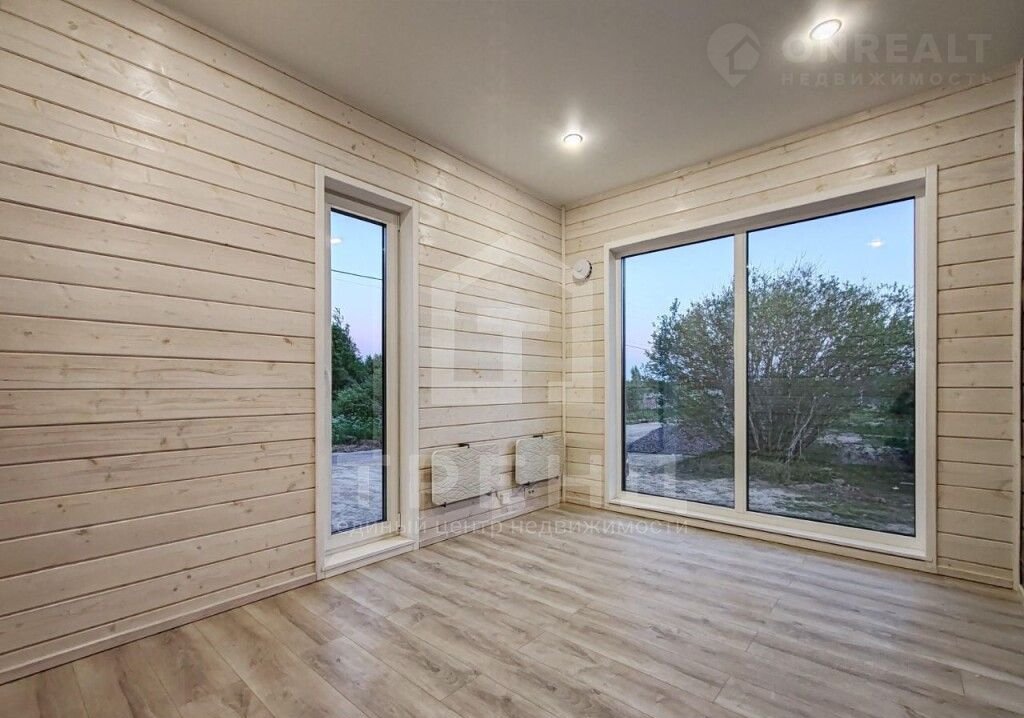 Дом состоит из трёх спален (11+11+8 м2), большой кухни-гостиной (30 м2) , прихожей (4м2), двух санузлов (4.5+3 м2) . Высота потолка 2.7 м. Два входа. Огромная терраса с видом на лес и закат.