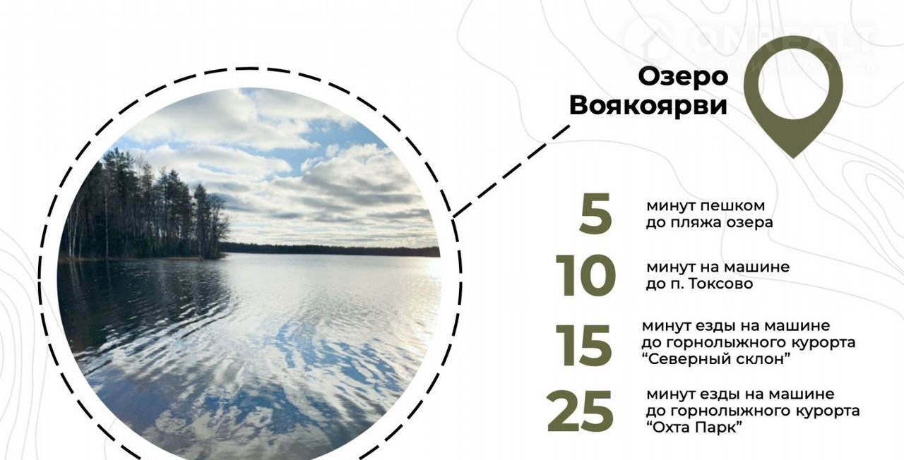 • Поликлиника, школа и детский сад в 5-10 минутах езды. Внешнюю инфраструктуру можно найти в соседних поселках городского типа Токсово и Новое Токсово.