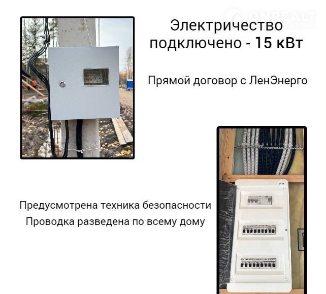 • Электричество - подключено 15 кВт. Прямой договор с ЛенЭнерго.