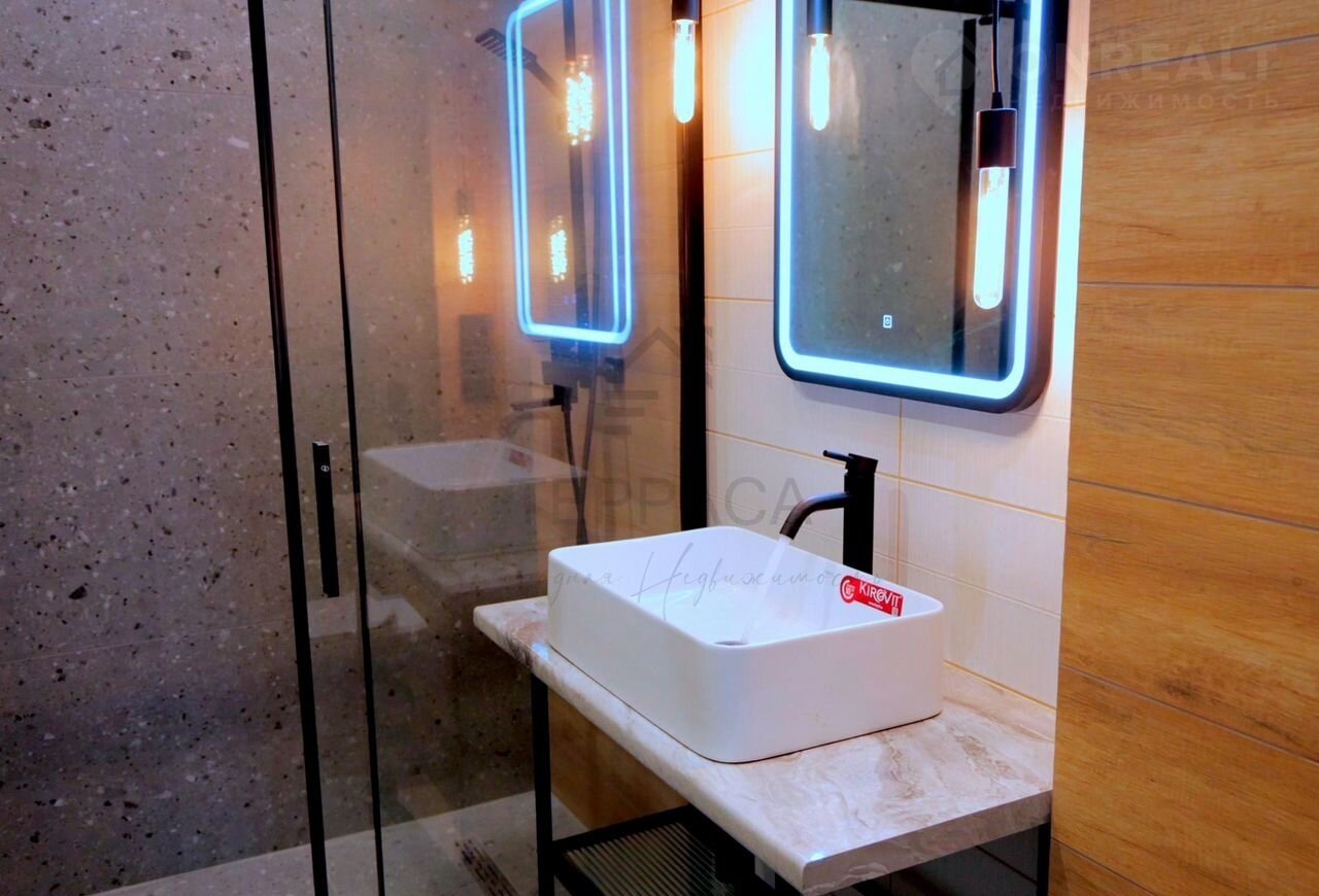 Полы – износостойкий кварцвинил и фактурный керамогранит.