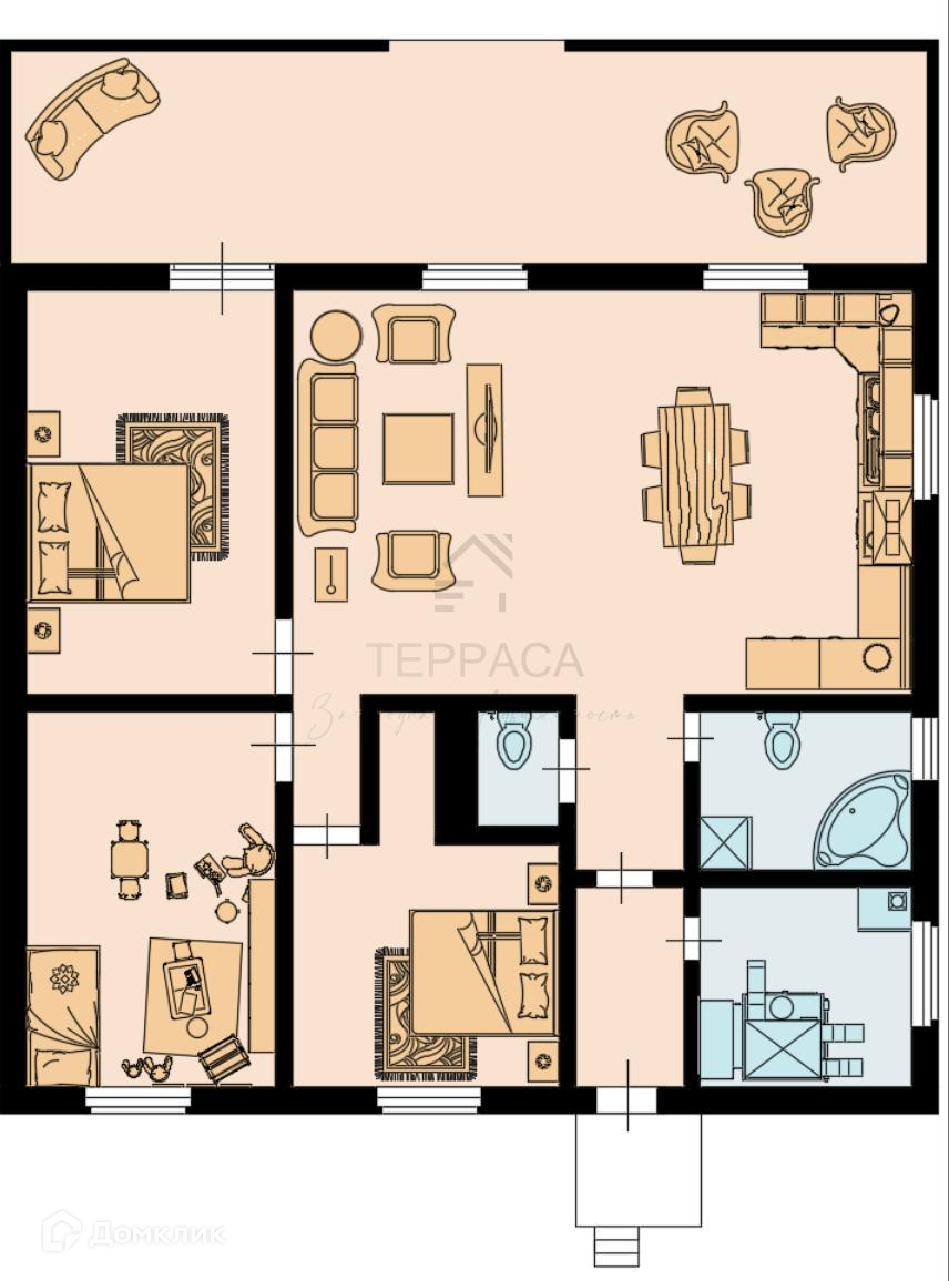 Дом площадью 150 кв.м с учетом террасы, построен в 2022 году.