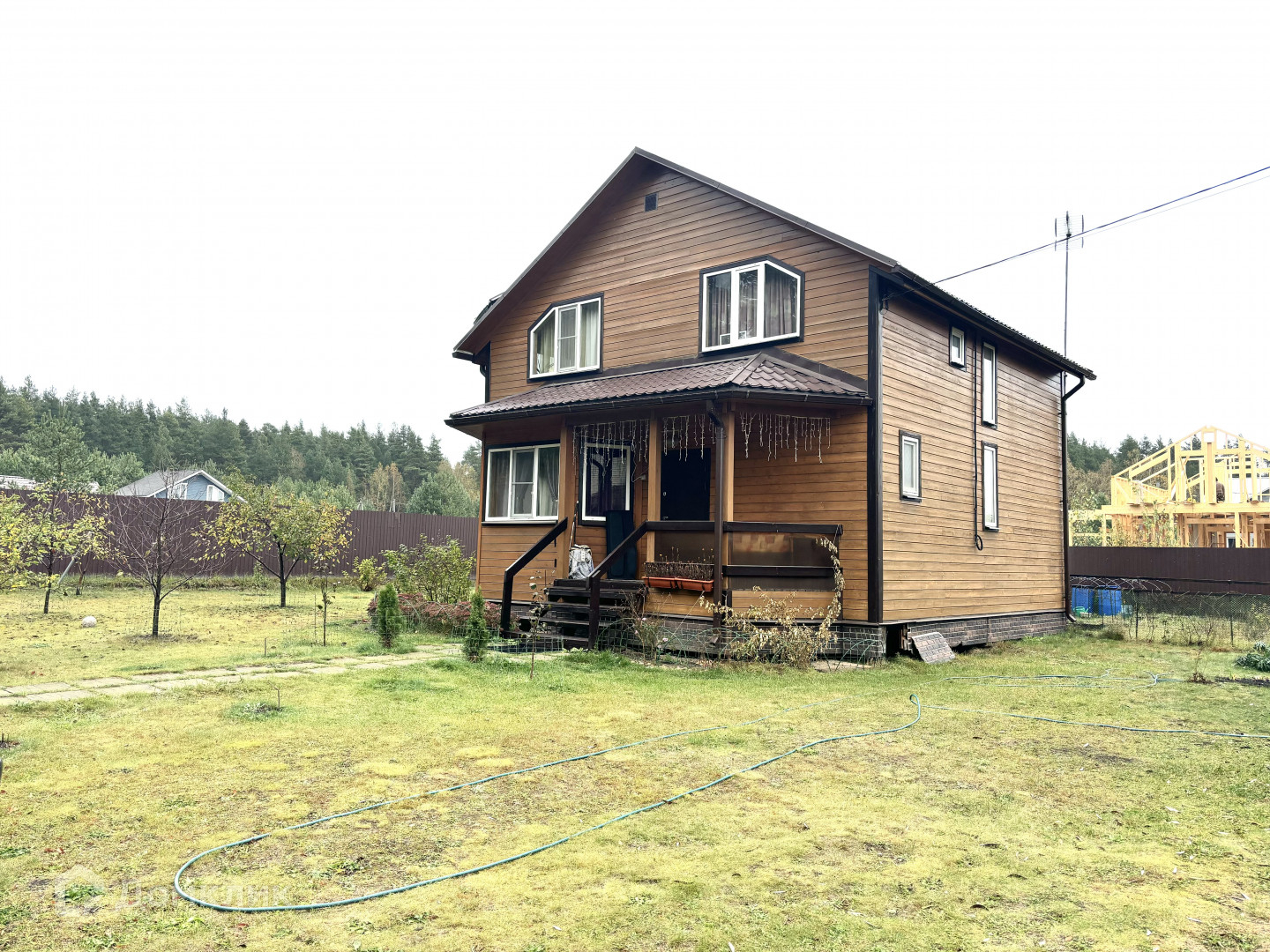 Дом построен в 2016 по каркасной технологии, утепление 150 мм, 2 этажа, свайный фундамент. На первом этаже расположена кухня-гостиная, 1 комната и с/у, на втором этаже 4 комнаты и с/у.