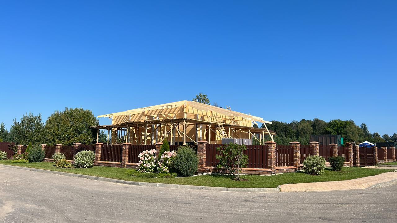 Коттеджи и участки продаются вместе с забором и входной группой (ворота и калитка), которые выполнены в едином стиле на всей территории поселка.