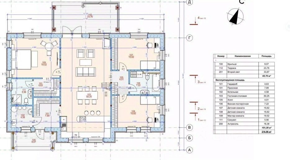 - кухня столовая гостинная с выходом на террасу 40 кв.м