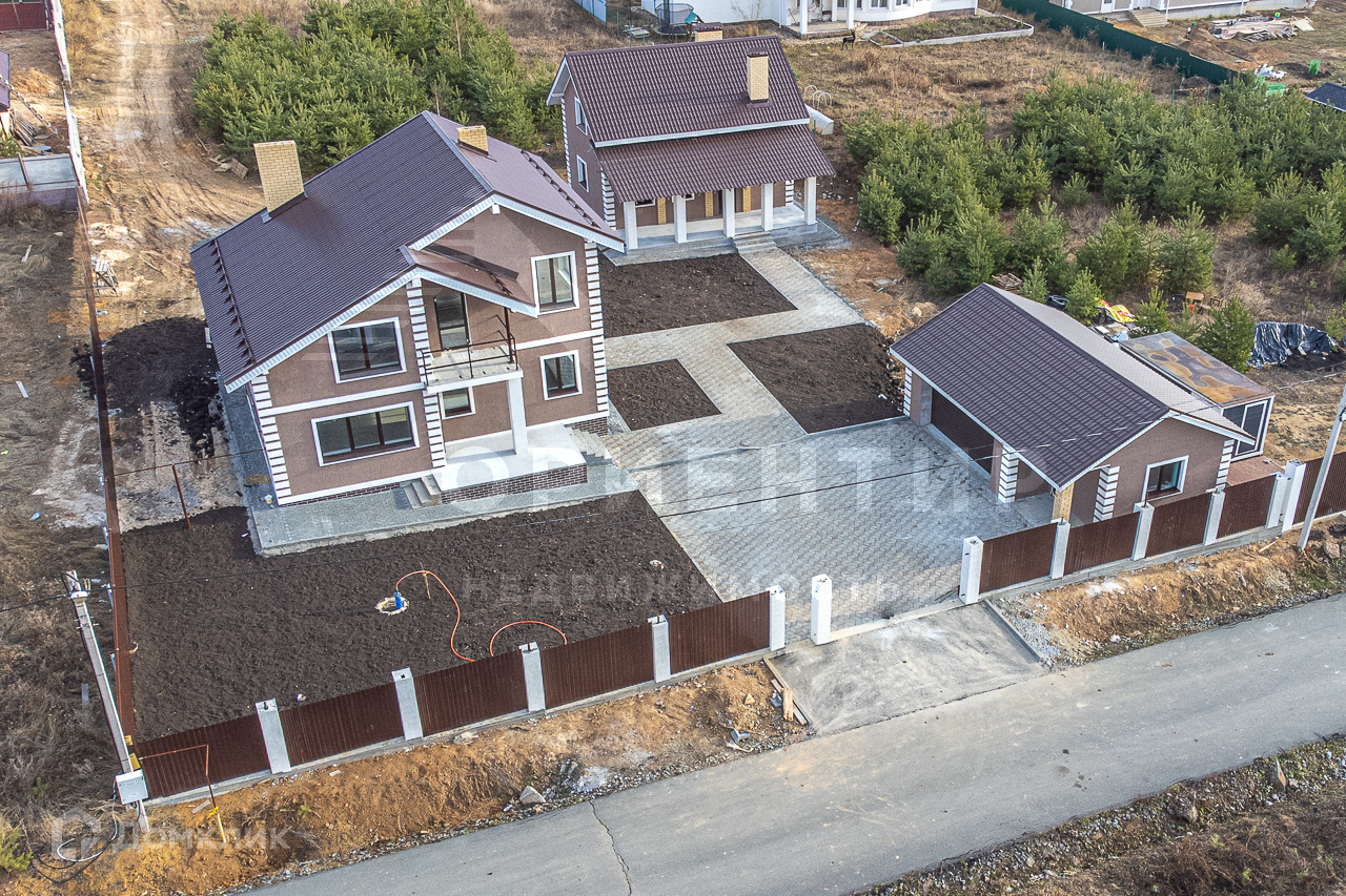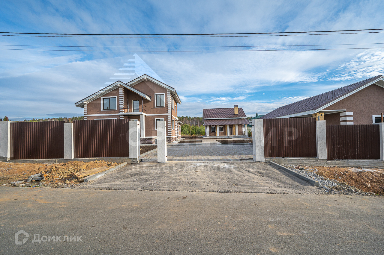 Эксклюзивное предложение для семьи или двух семей! Комплекс домов состоящий из основного дома 206 кв.м.  (5 спален ), гостевого дома-бани 100 кв.м. (2 спальни) и гаража на две машины! Комплекс находится в КП «Европа». Поселок закрытого типа, огорожен забором, выездная группа с пропускной системой и видеонаблюдением. От Екатеринбурга прямо до участка проходит новая асфальтированная дорога (23 км, 30 минут в пути).Коммуникации: газ, электроэнергия, скважина 70 м. Интернет, круглосуточная охрана и видеонаблюдениеАсфальтированные дорогиПланировка основного дома 206 кв. м.: Высота потолков 1 и 2 этажа 3 метра. 1 этаж:-кухня (25 кв.м.)-гостиная (33 кв.м.) -сан.узел (10,5 кв.м.)-спальня (19 кв.м.) -котельная-кладовая2 этаж:-три спальни  (24 кв.м. и две по13 кв.м.) -сан.узел (6 кв.м.)Планировка дома-бани 100 кв. м. :1 этаж: -кухня-гостинная (25 кв.м.)-сан.узел (3 кв.м.)-душевая (6,4 кв.м.)-парная (6 кв.м.) 2 этаж:-две спальни (18 кв.м. и 20 кв.м.) Технические характеристики дома: Фундамент: свайно-ростверковый с монолитной плитой. Стены и перегородки — твинблок (стена 40 см), утеплитель фасада 100 ммФасад: штукатурка «Короед»Окна: профиль 70 мм с односторонней ламинацией; Крыша: металлочерепица Монтерей, утеплитель мин. Вата 250Коммуникации: Канализация: септик трехкамерный, рассчитан на семью 4-7 человек. Водопровод: скважина 70 м., заведена в домГаз заведен в дом, установлены электрический и газовый котлы, бойлер на 300 литров. Внутренние инженерные системы:Сделана разводка электричества с установкой теплых полов на 1 этаже; на втором этаже установлены радиаторы. Сделана разводка системы водоснабжения и канализации по этажам; Внутренняя отделка:Отделка стен «под чистовую», чистовая отделка котельной, стяжка полов с утеплением первого этажа;Один взрослый собственник. Просмотр по записи, Звоните уже сегодня!