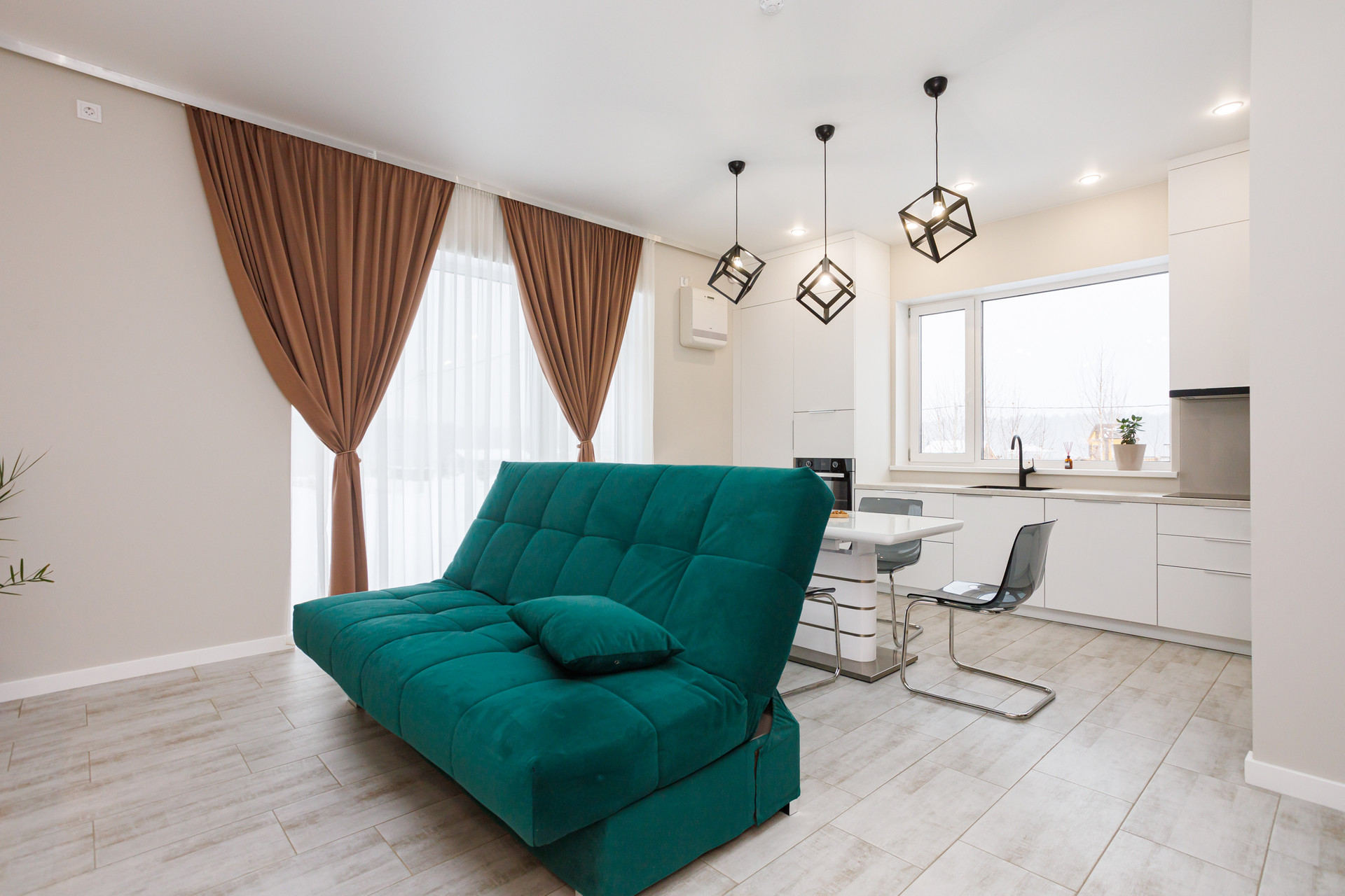 – Кухня-гостиная 27.9 м² с окнами "в пол" и отдельным выходом на улицу
