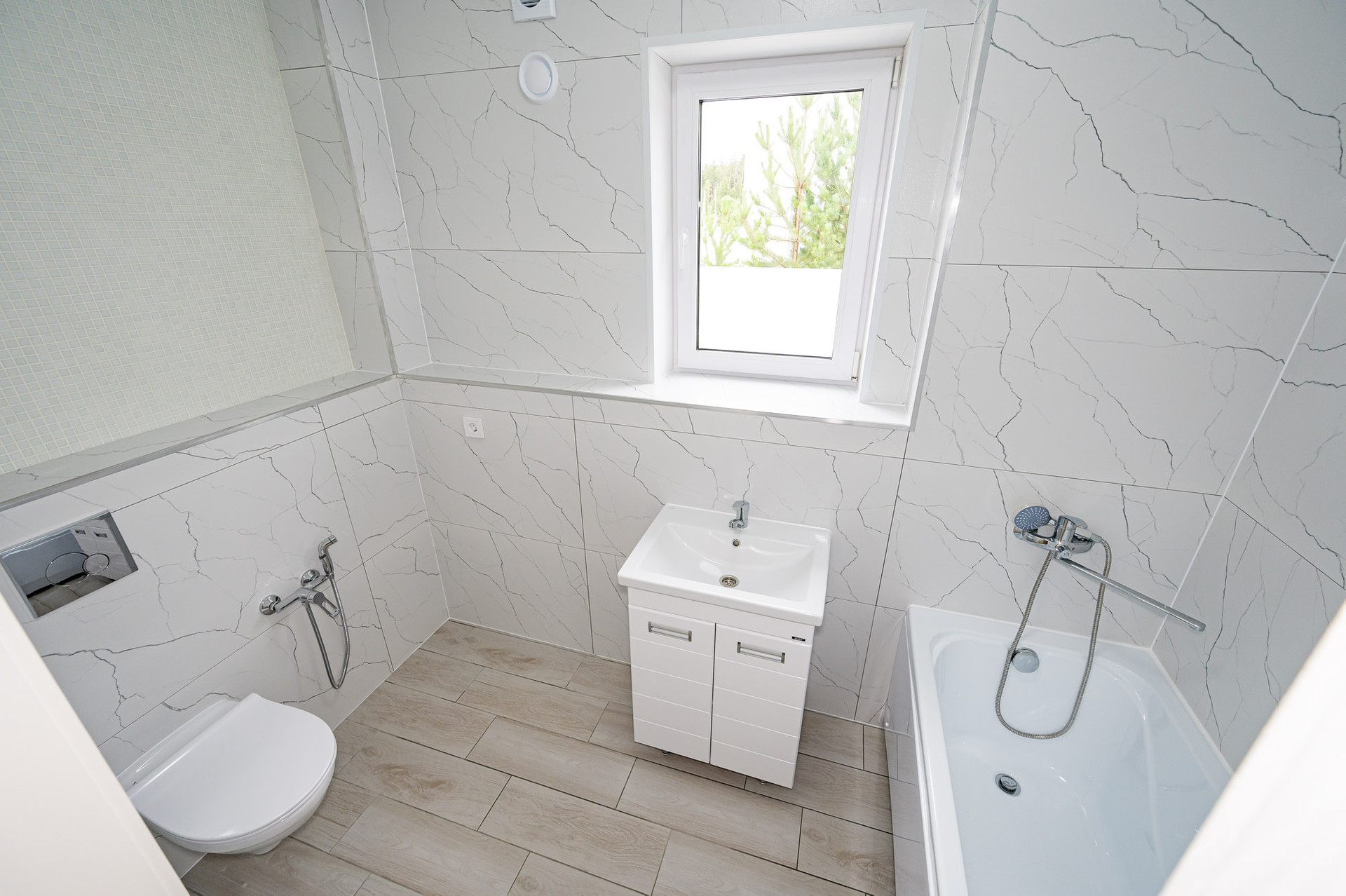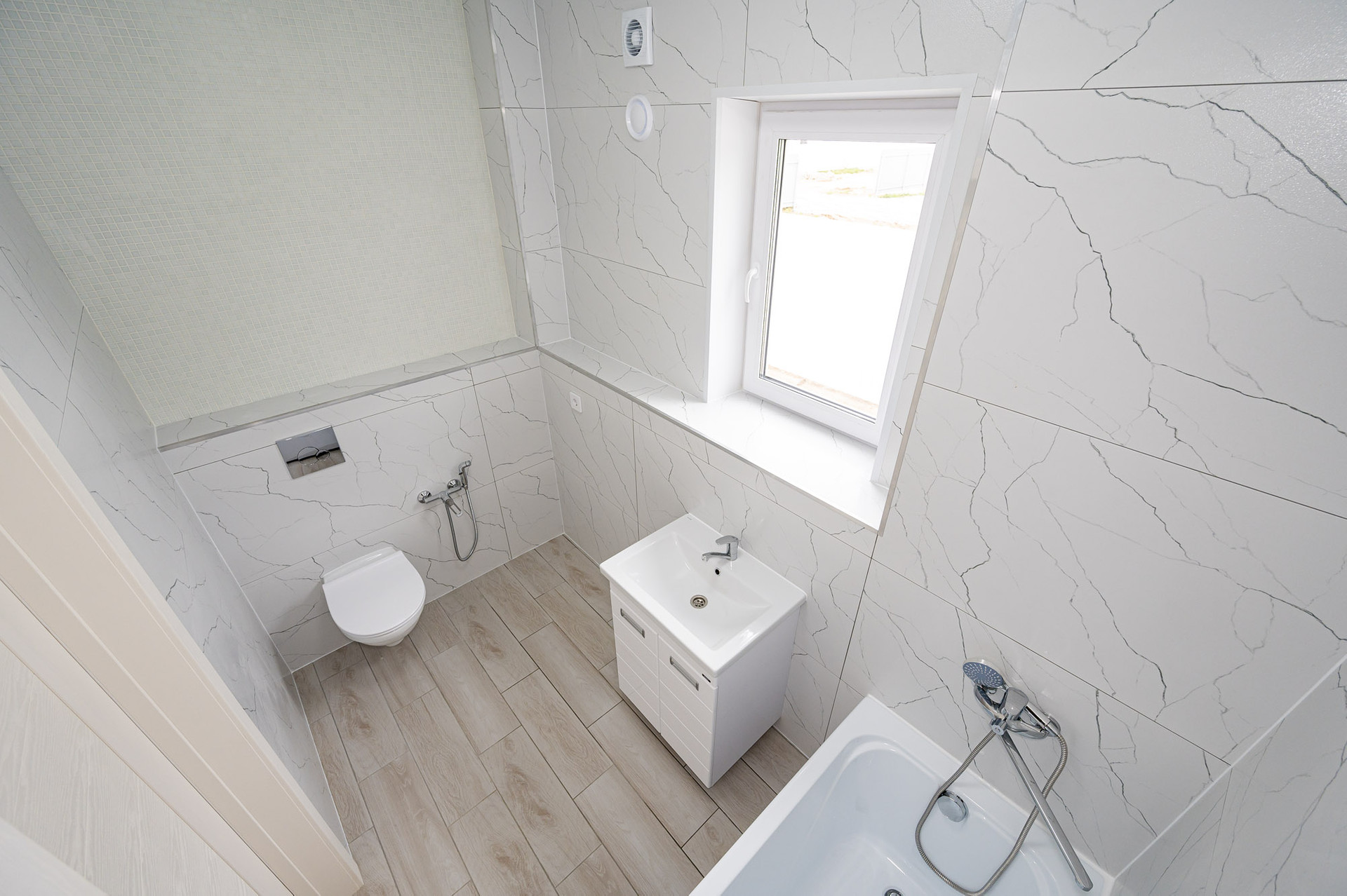 - Качественная чистовая отделка: керамогранит, обои, сантехника, осветительные приборы, межкомнатные двери.