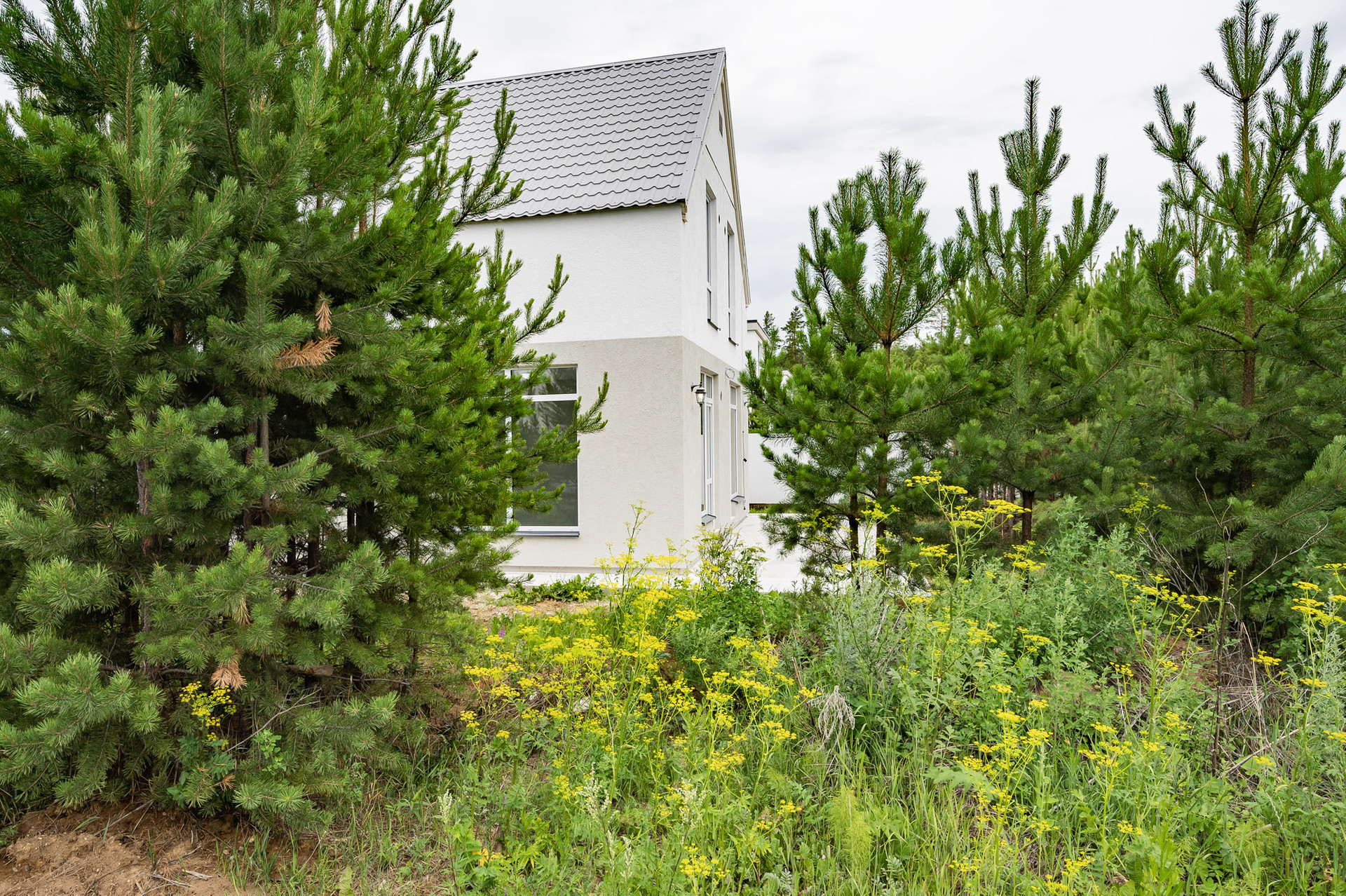 Коттедж великолепно вписан в ландшафт участка леса и органично дополняет пейзаж.