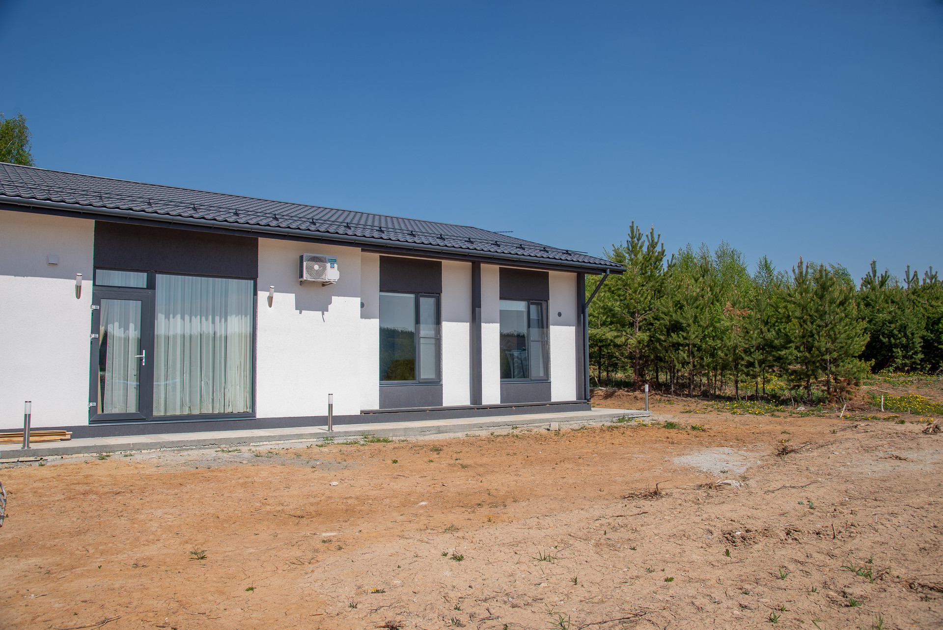 Дом расположен в быстроразвивающемся коттеджном поселке Европа, в окружении молодого хвойного леса