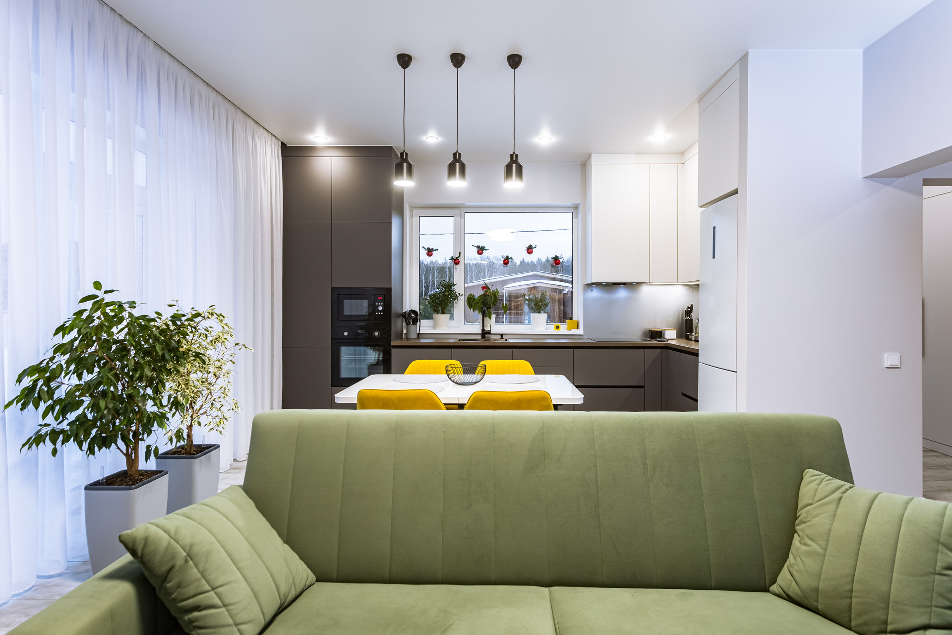 – Кухня-гостиная 41 м² с окнами "в пол" и отдельным выходом на улицу