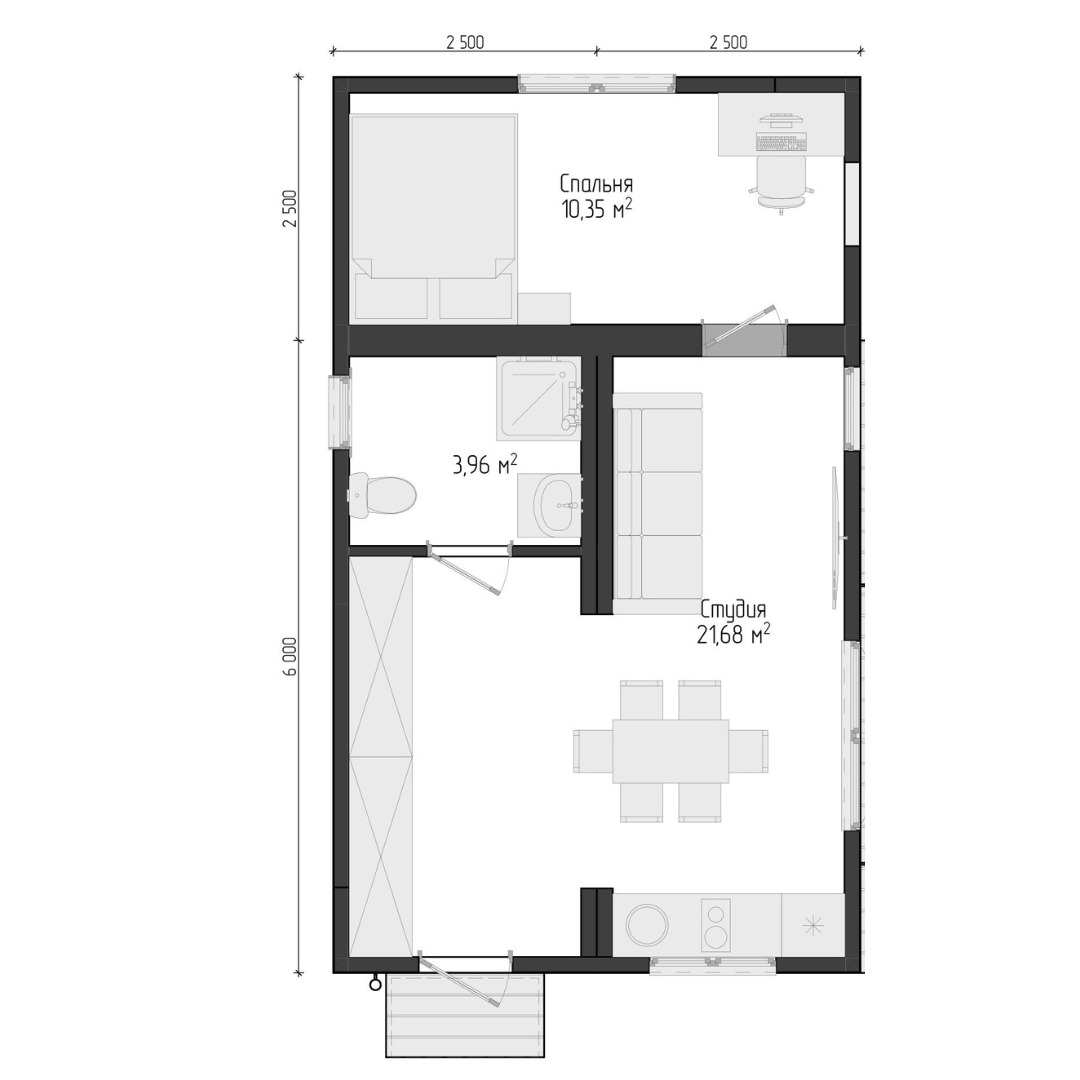Дом "Реальная дача" 42,5 кв.м, планировка студия +спальня, в чистовой отделки с коммуникациями.