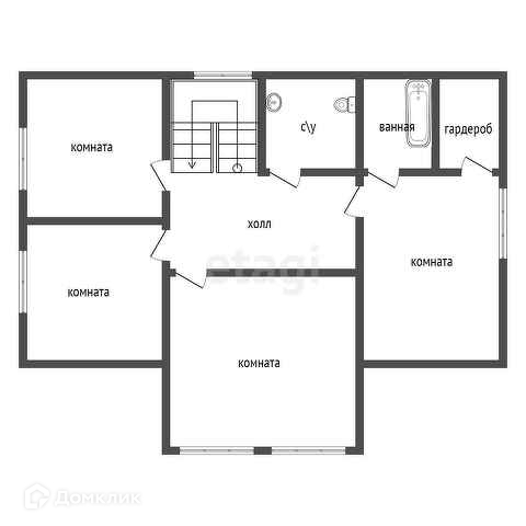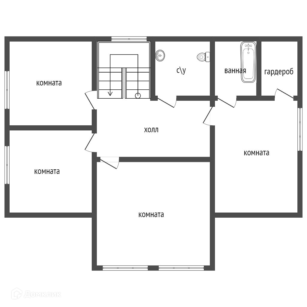 На втором этаже 4 спальни и санузел, один . Просторный холл.