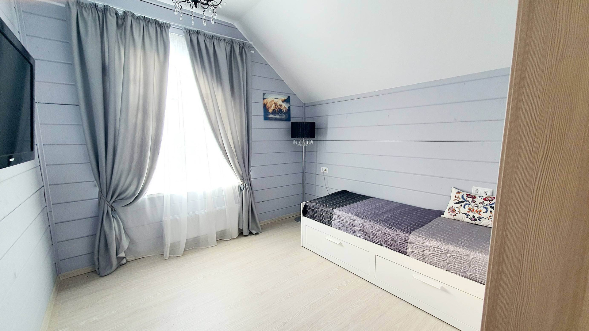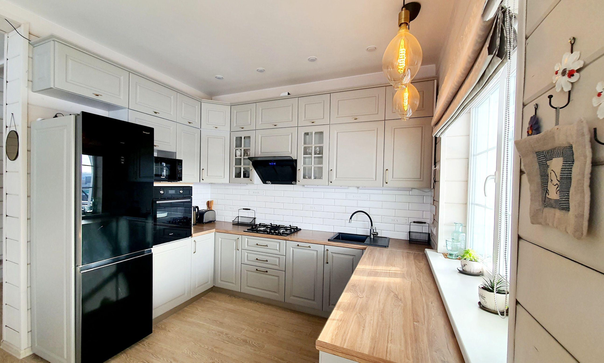 Новым хозяевам остается встроенная мебель и аксессуары: кухонный гарнитур с техникой, шкафы для хранения одежды, шторы с карнизами, остальная мебель по договоренности.