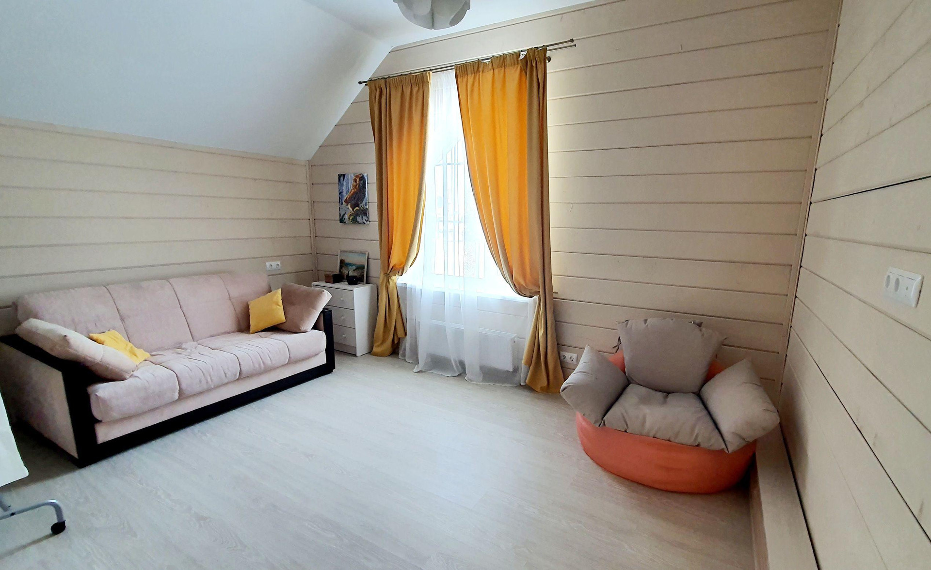 Коттедж, построен по индивидуальному проекту. Для комфортного круглогодичного проживания продумано все до мелочей. На первом этаже кухня - столовая, гостиная, прихожая, санузел с сауной и терраса, второй этаж: четыре отдельные комнаты и ванная комната с окном.