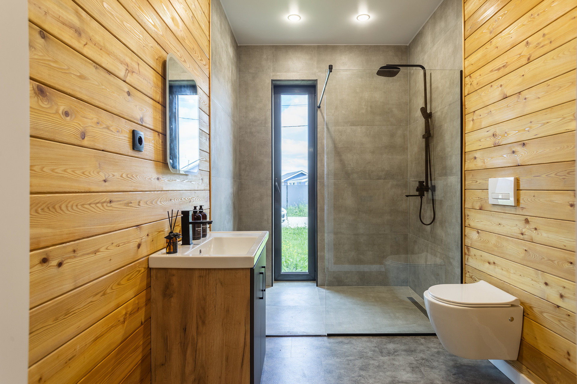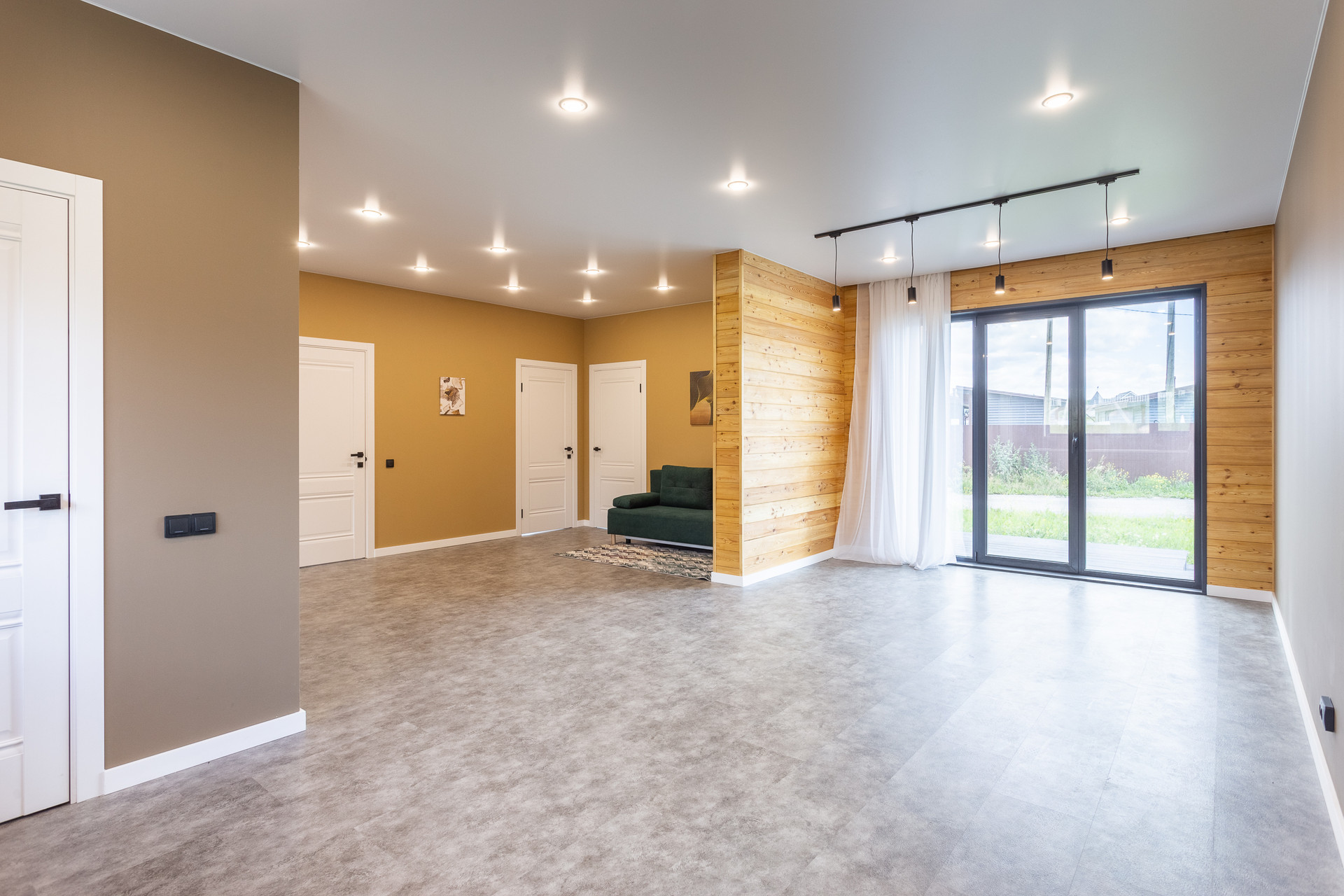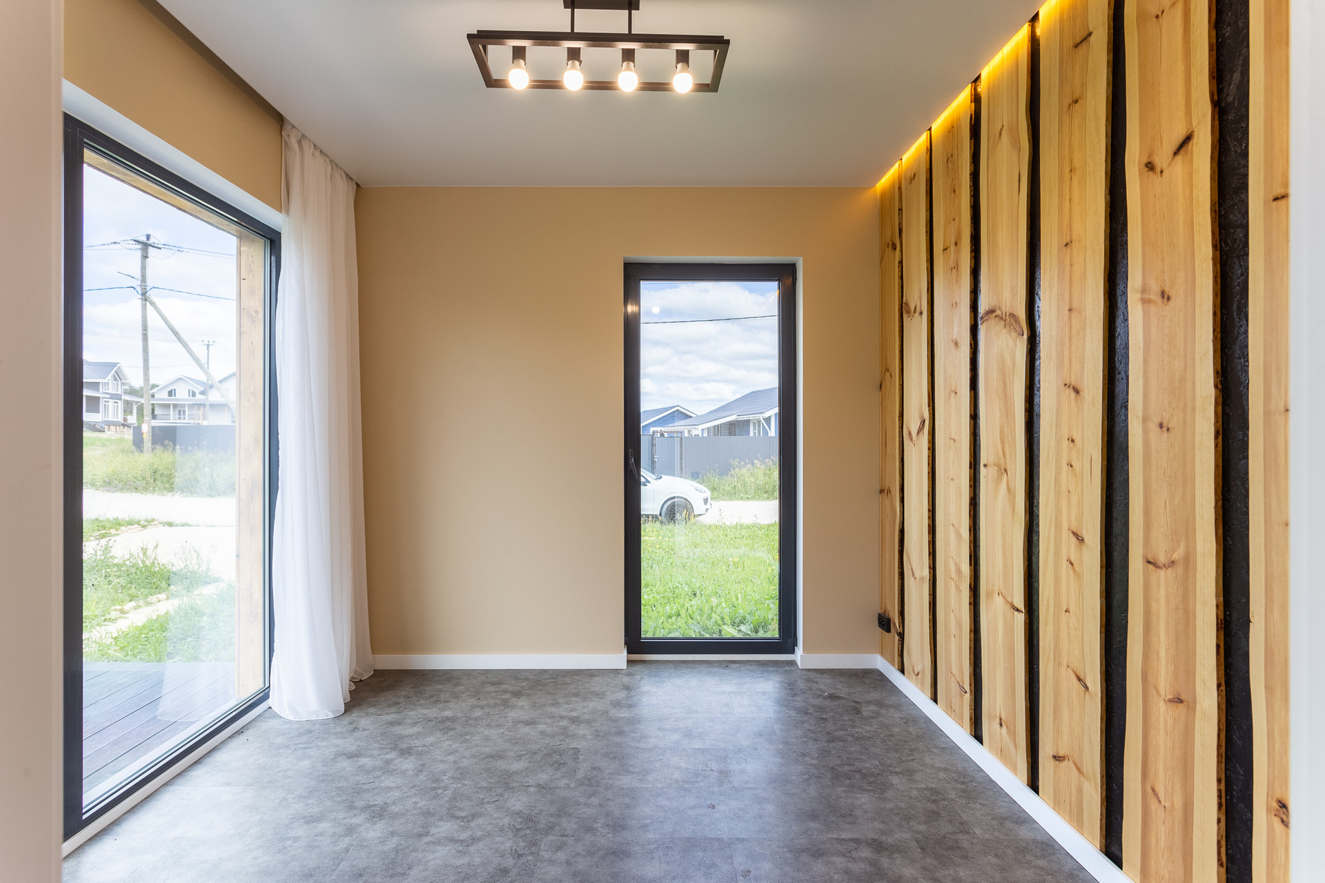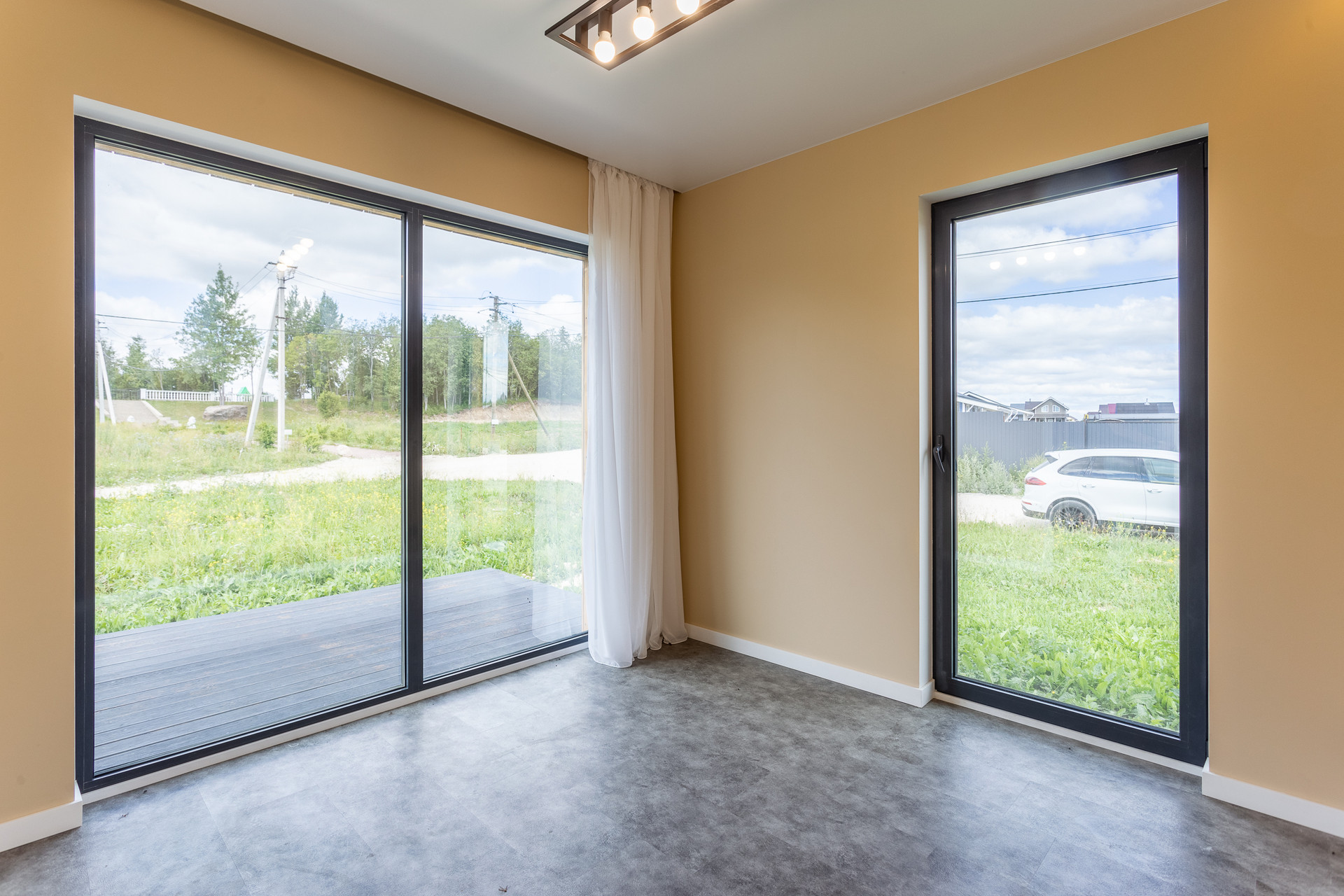 - Высота потолка 2.7 м. Панорамное остекление в пол – в каждом помещении.