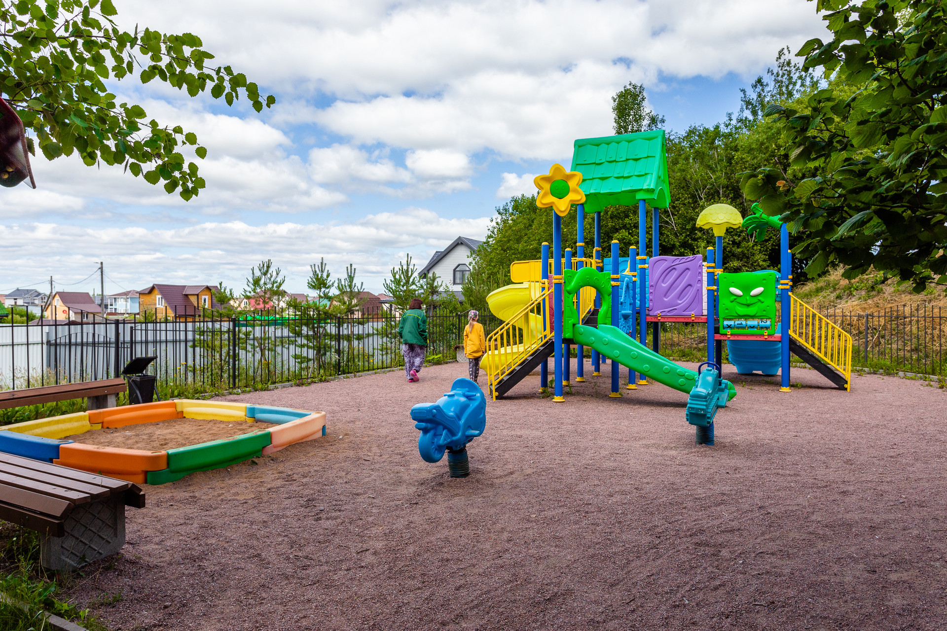 - Поселок давно обжит, есть детские площадки и кофейня.