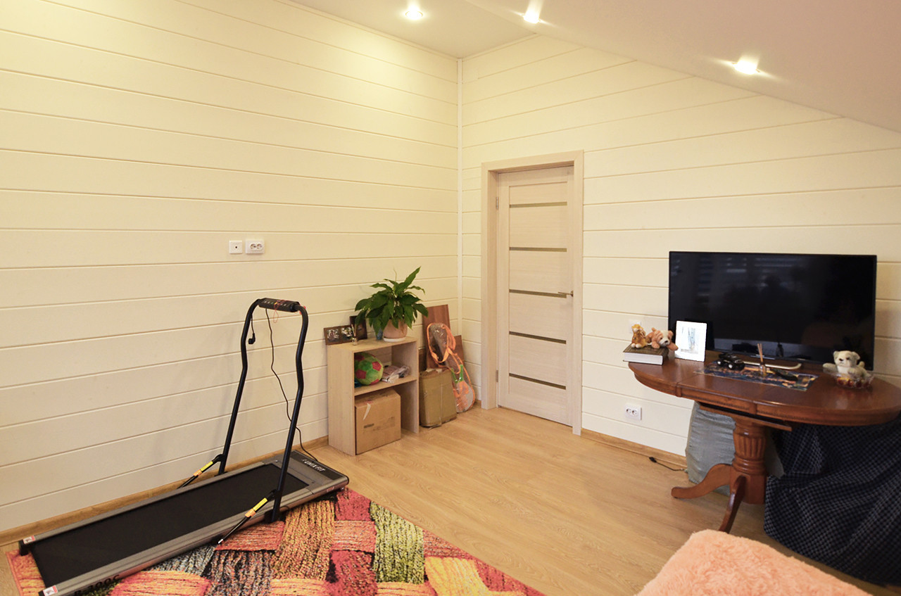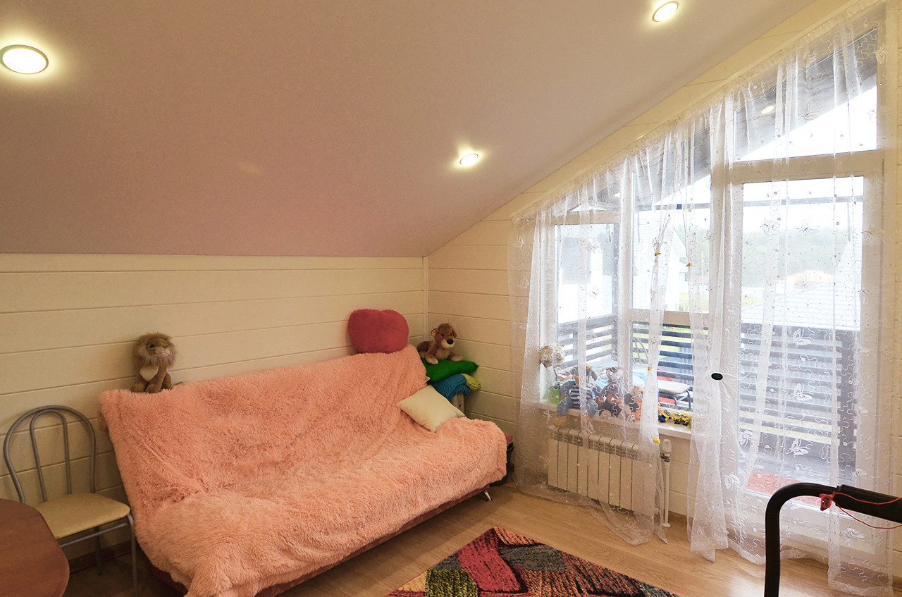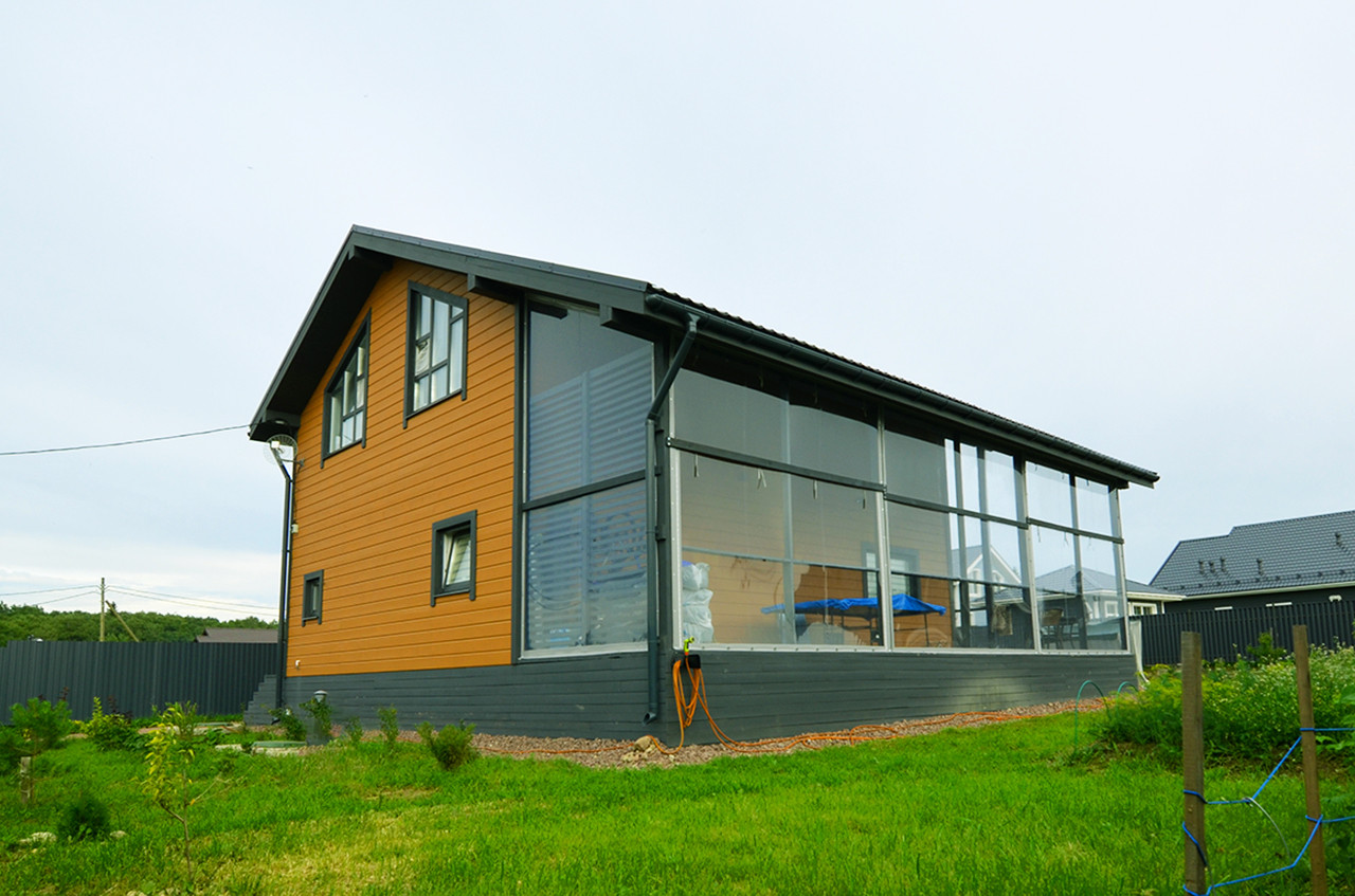 Уютный двухэтажный дом площадью 192,3 кв.м, идеально подходящий для комфортного круглогодичного проживания, построен с применением современной каркасной технологии на надежном свайном фундаменте.