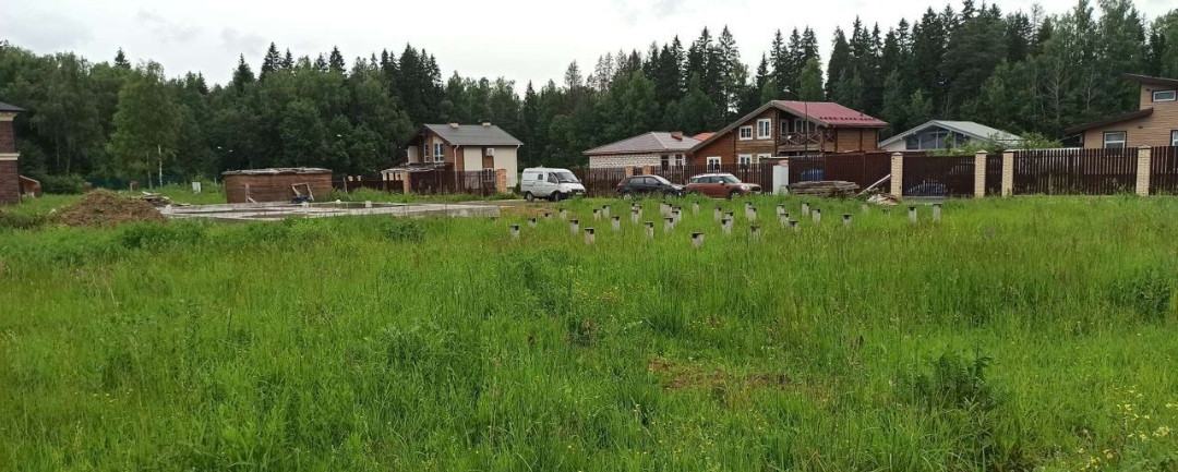 Один из лучших участков!! В лесном кармане!! В обжитой первой очереди!!Правильной формы, не проездной, тупиковый проезд!! На участке уже ж/б сваи, положены плиты на въезд, с трубой под отвод воды, сделан каркас бруса 200*200 с черновым полом. + готовый проект дома.