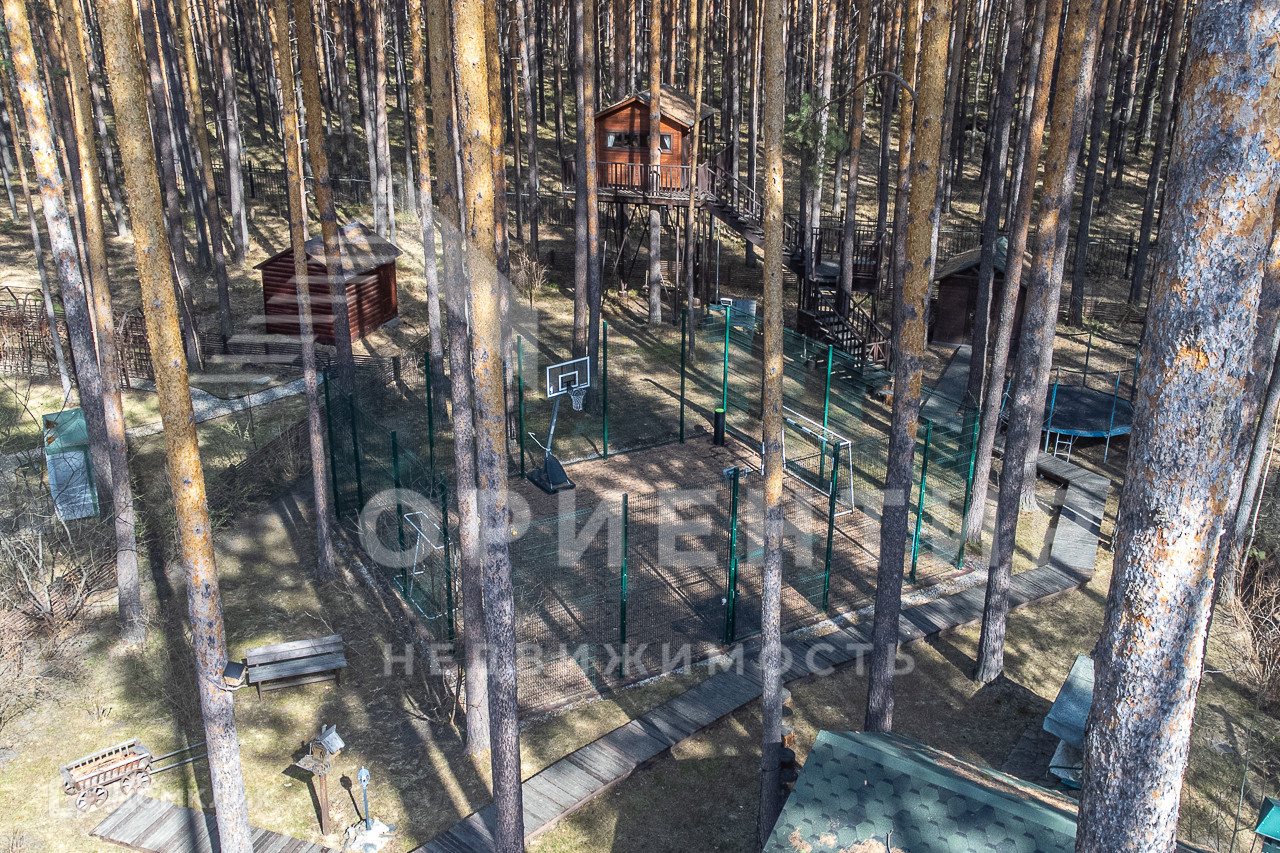 Участок 15,6 соток. Граничит с лесным массивом. На участке также множество многовековых сосен. Имеется "домик на дереве", для детей станет любимым местом. Есть своя спортивная площадка. Беседка с мангалом и печкой. Домик для хозяйственной утвари.