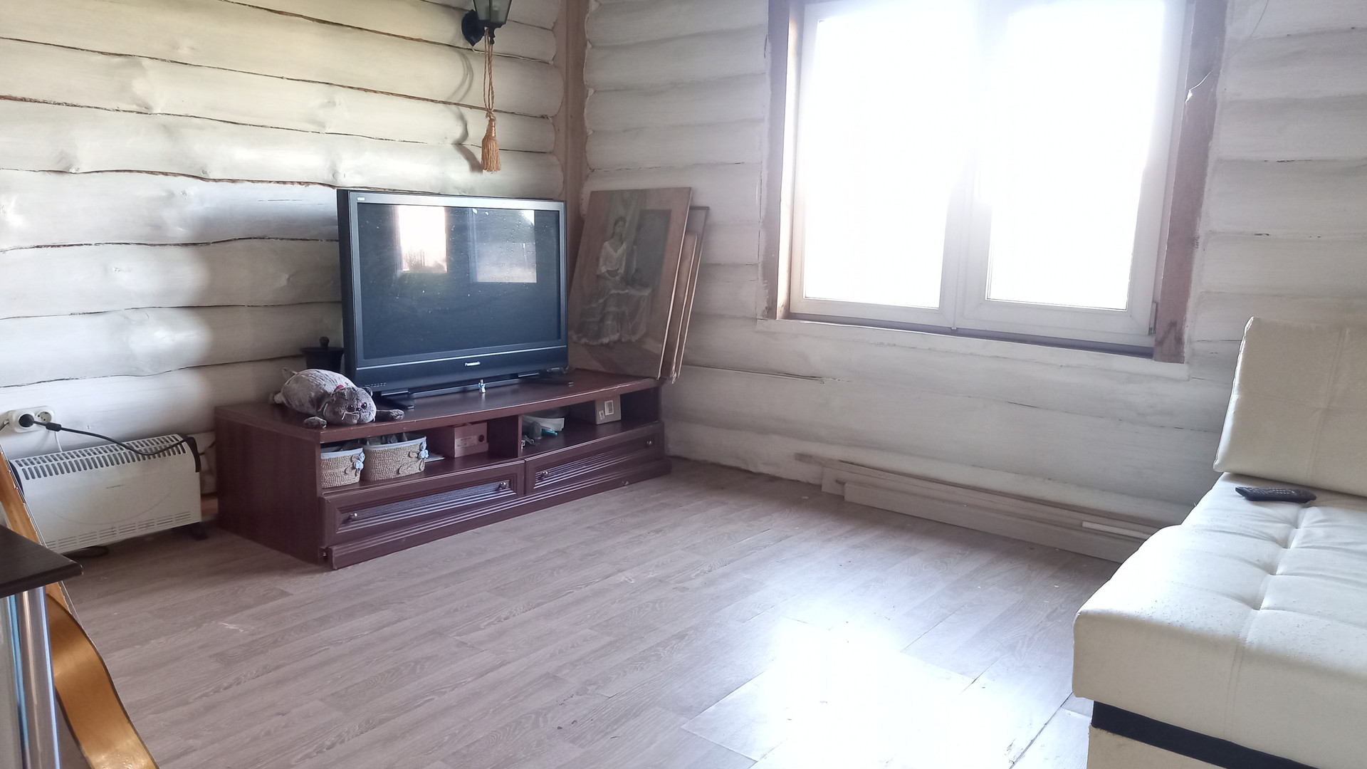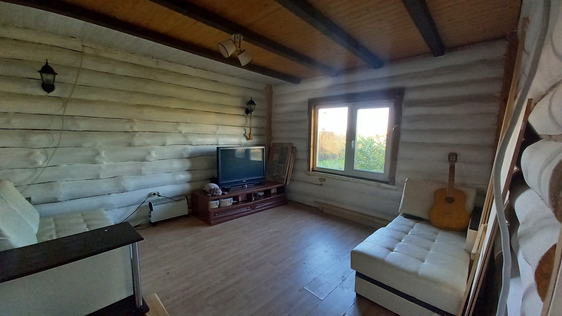 Дом построен из бревна и второй этаж по каркасной технологии.