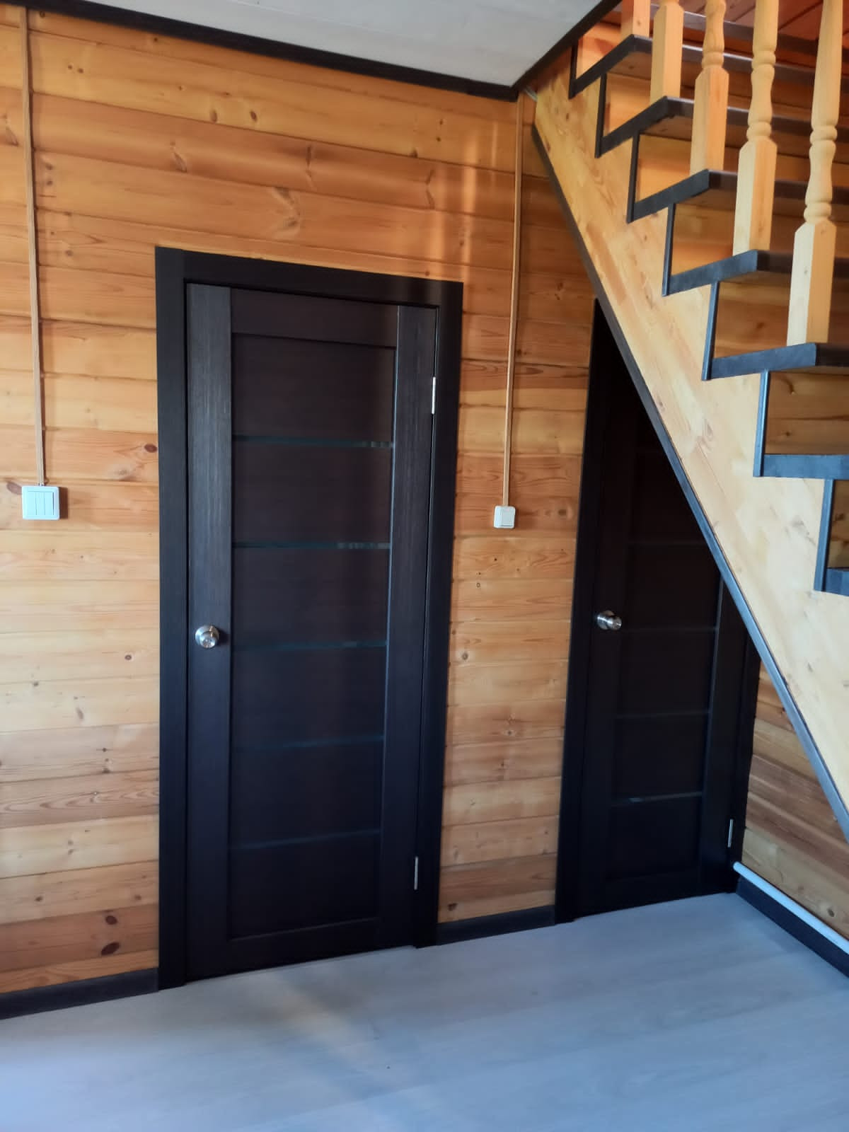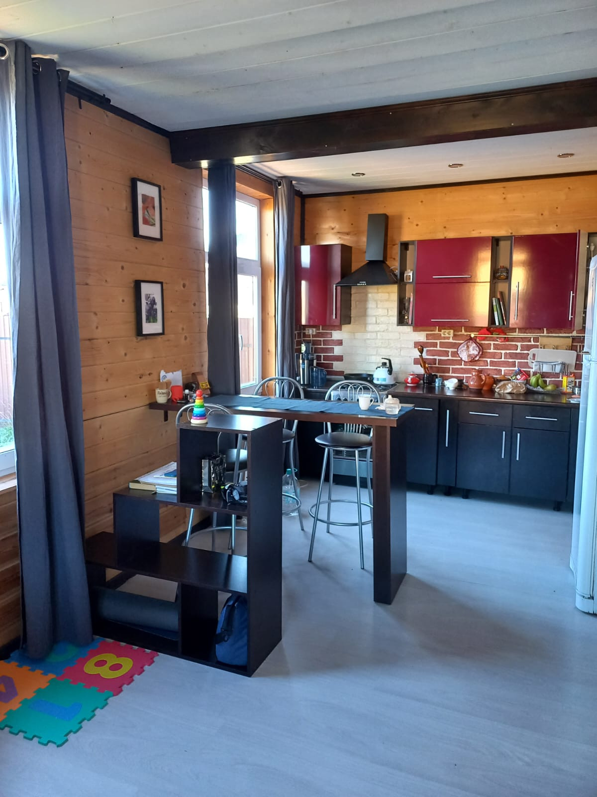1-й этаж: кухня-гостиная, 2-й этаж: спальня, детская.