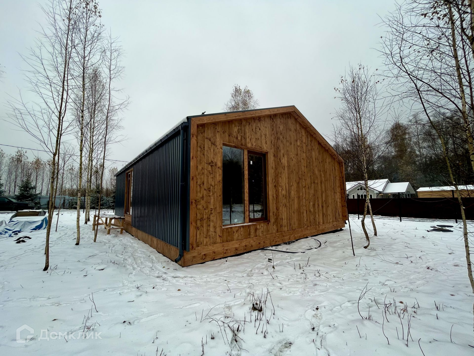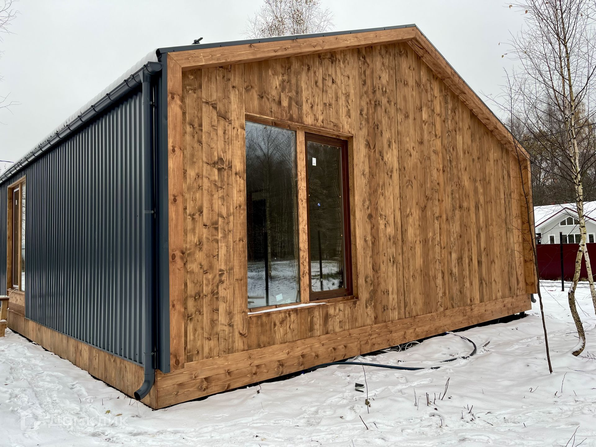 Дом в стиле барнхаус. Фундамент сваи, панорамные окна, под чистовую отделку. Планировка дома: 3 спальни, кухня с гостиной, совмещенный санузел. Участок с домом будут огорожены по периметру. Есть возможность купить этот дом под ключ. Высококачественное строительство с использованием экологически чистых материалов по каркасной технологии.