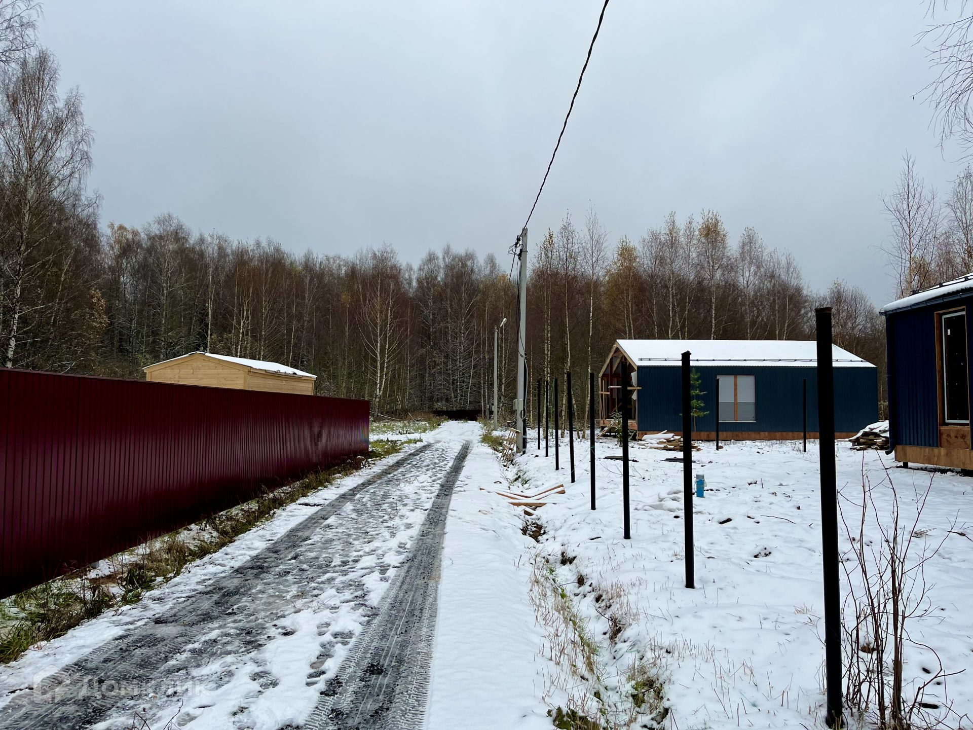 Подъезд - асфальтная крошка, зимой чистят. Мусор вывозят. Соседи в активной стройке, многие планируют круглогодичное проживание. КП огорожен по периметру забором, на въезде установлены электрические ворота.