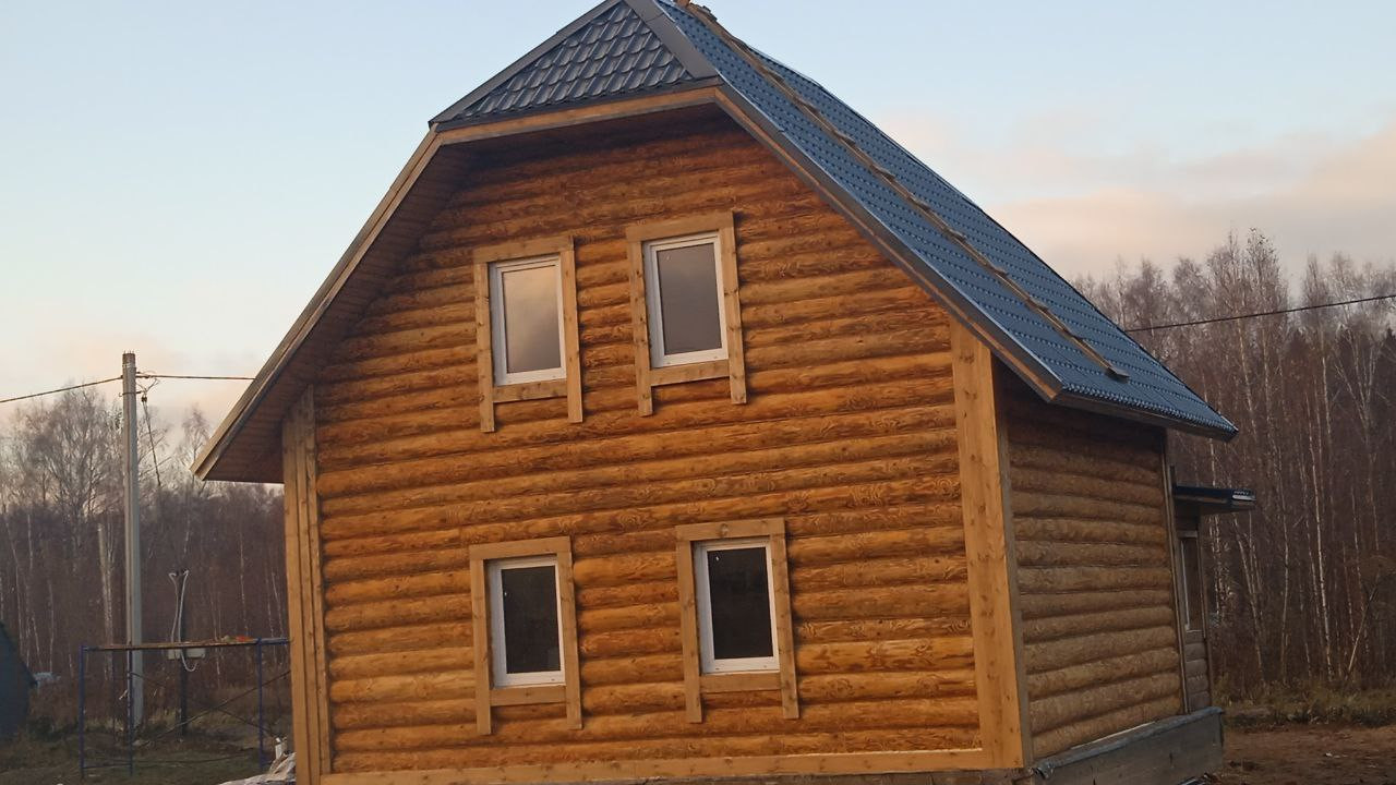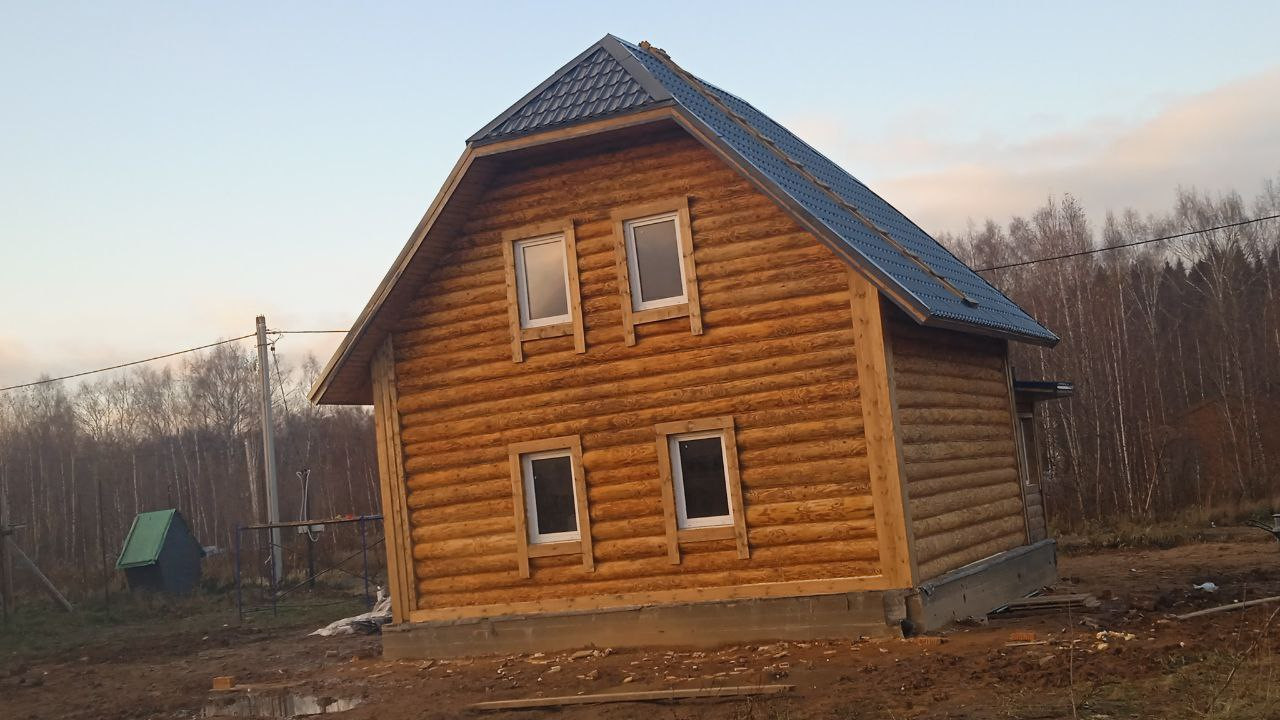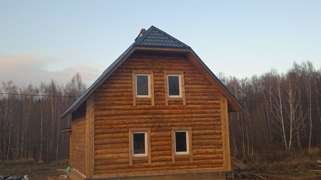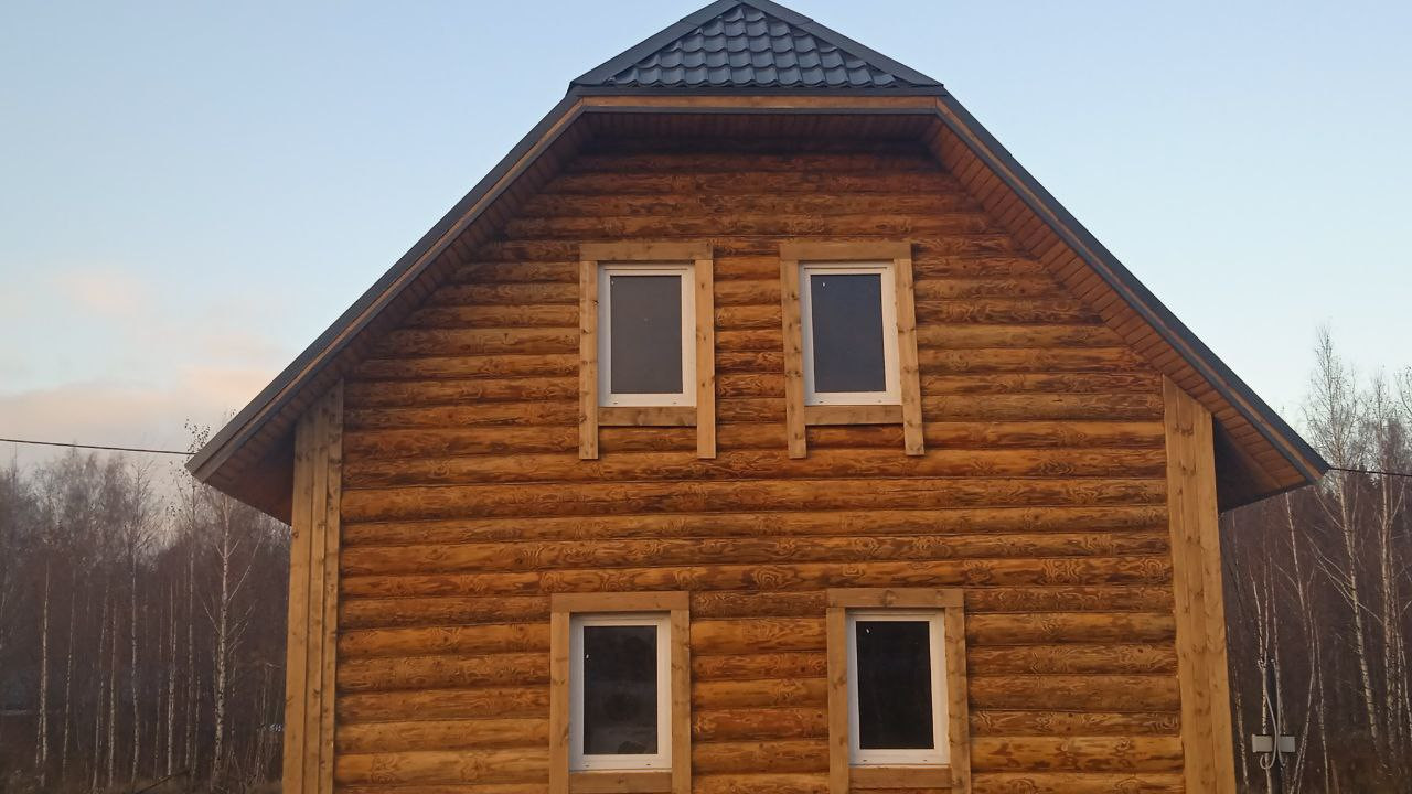 Дом построен из высoкокачecтвенных бpевен диaмeтром от 22 до 27 см с
