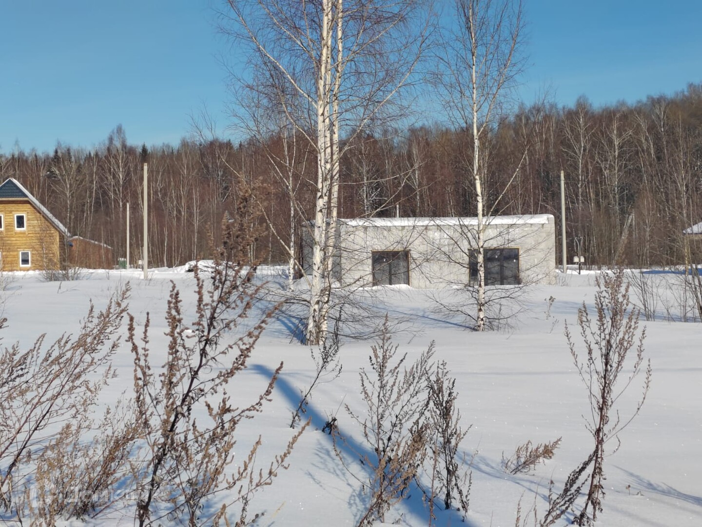 - Участок огорожен с трёх сторон.