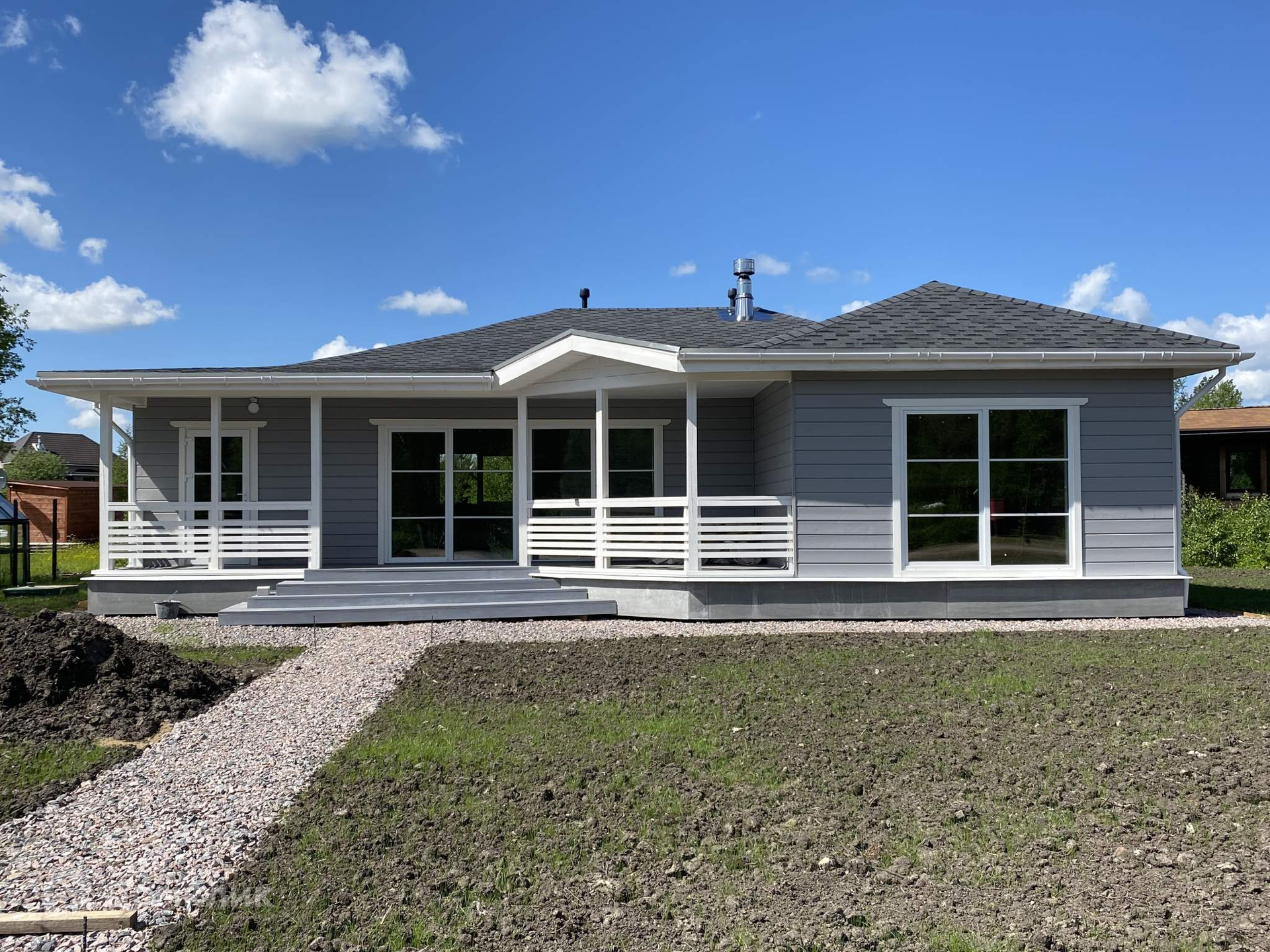 Планировочное решение и функциональное зонирование дома отвечают всем современным представлениям о комфортной жизни: в доме просторная прихожая; большая, солнечная гостиная, объединенная с кухней; 3 полноценные большие спальни; просторный санузел; кладовка и шикарная крытая терраса.