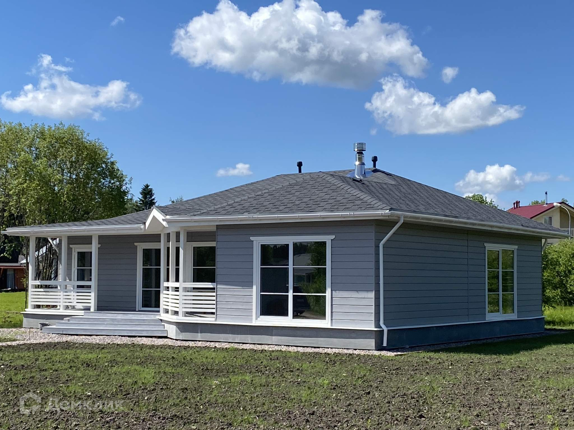 Новый, комфортный, 1-этажный загородный дом площадью 137 кв.м., расположен в районе пос. Рощино+5 км., современном, развитом, застроенном коттеджном поселке "Гелиос" на ровном участке 10 соток в собственности. Участок расположен в пешей доступности к остановке общественного транспорта.