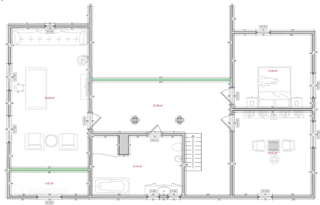 Жилая площадь 173.42 м2