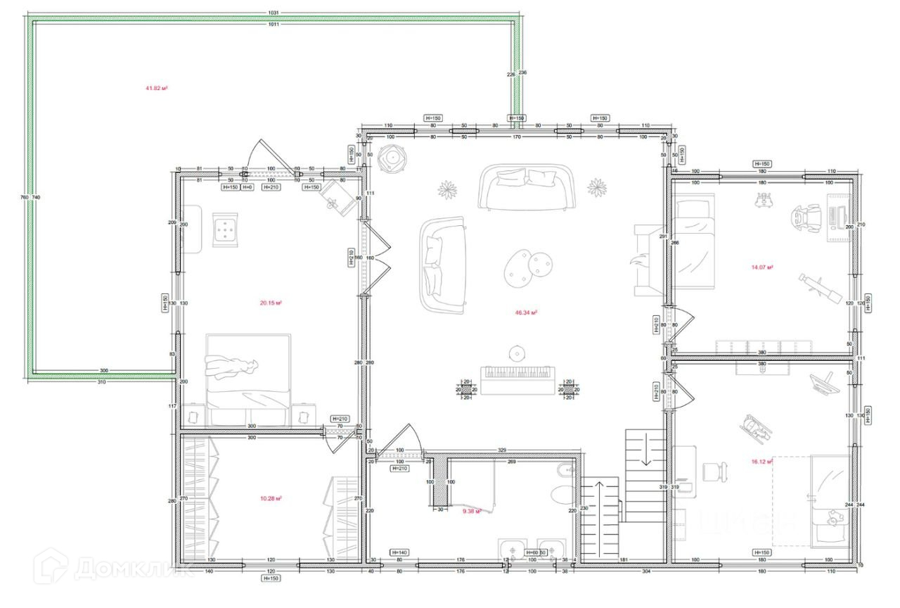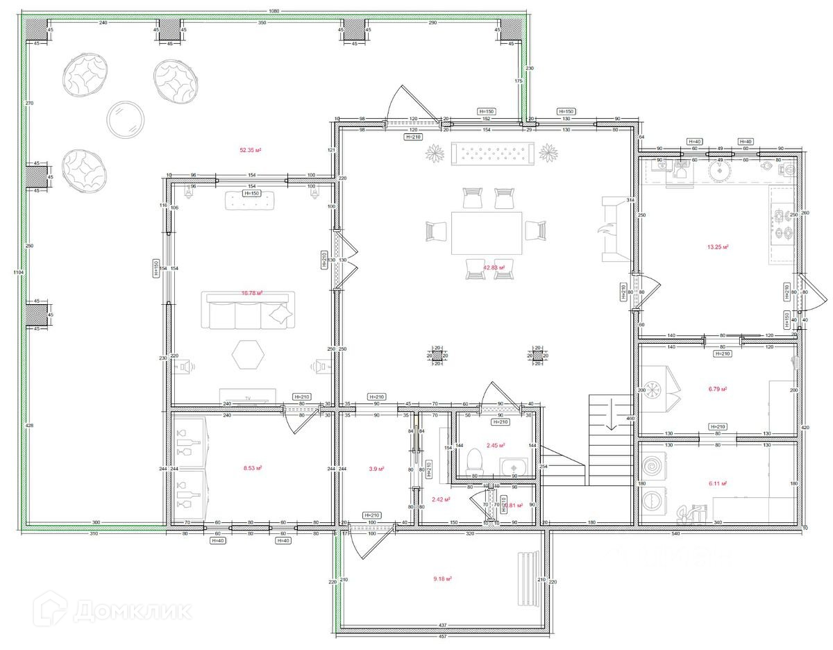* Основной дом — 448 м².