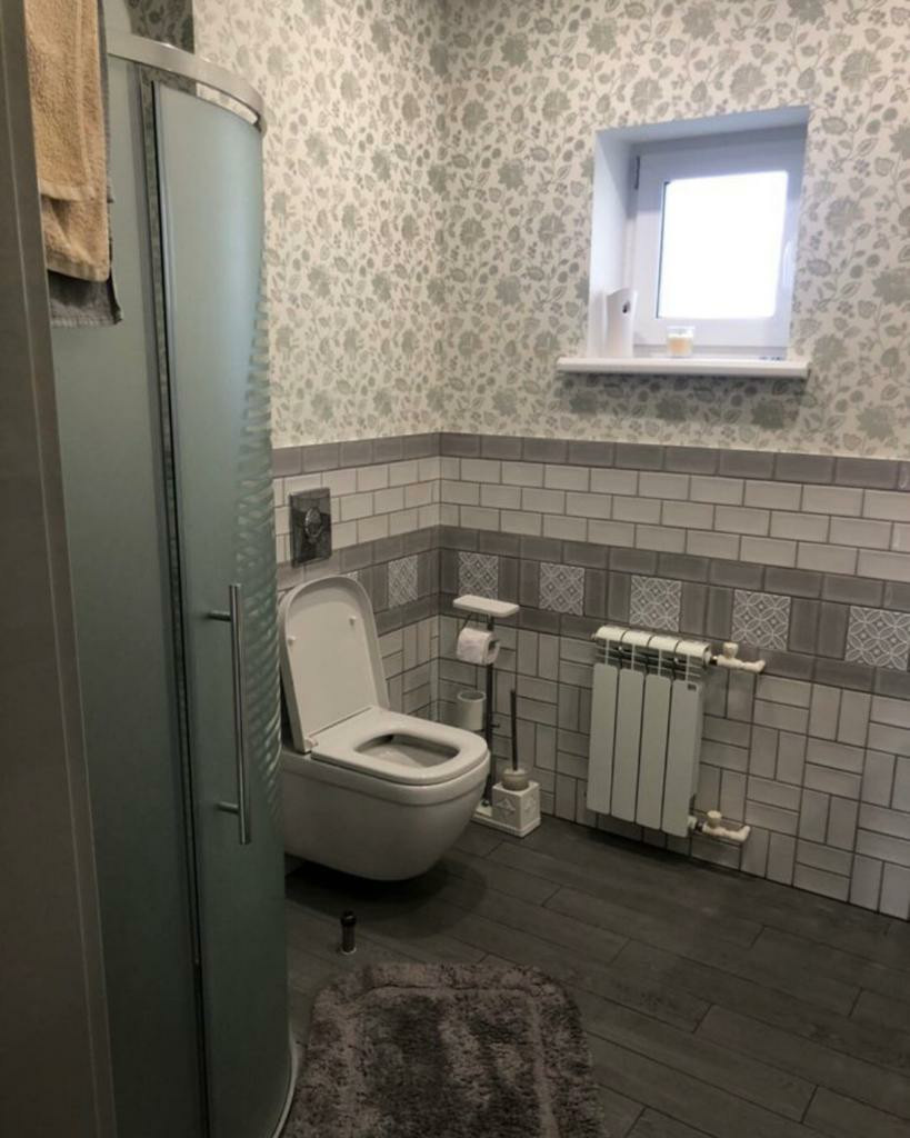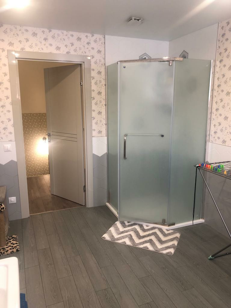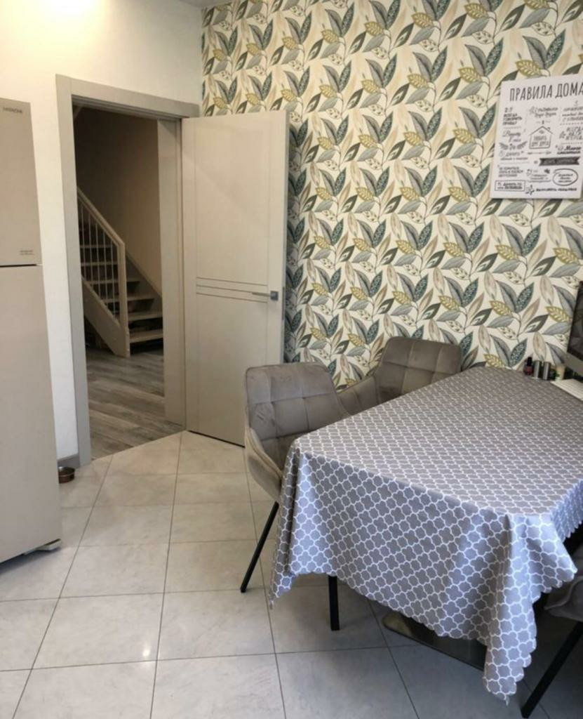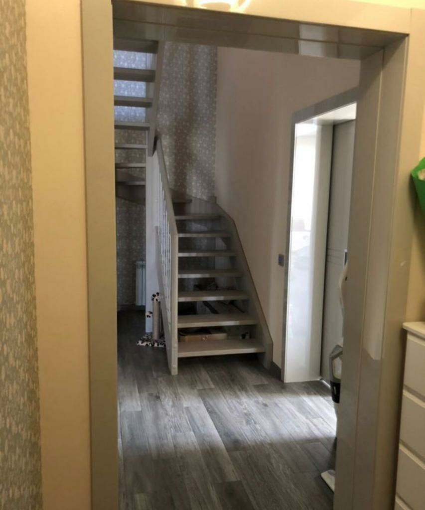 1-ый этаж кухня, с посудомойкой, индукционной плитой и встроенной техникой, просторная гостиная с выходом на участок, санузел с душем, котельная, прихожая. Лестница деревянная, перила металлические, сделана на заказ.
