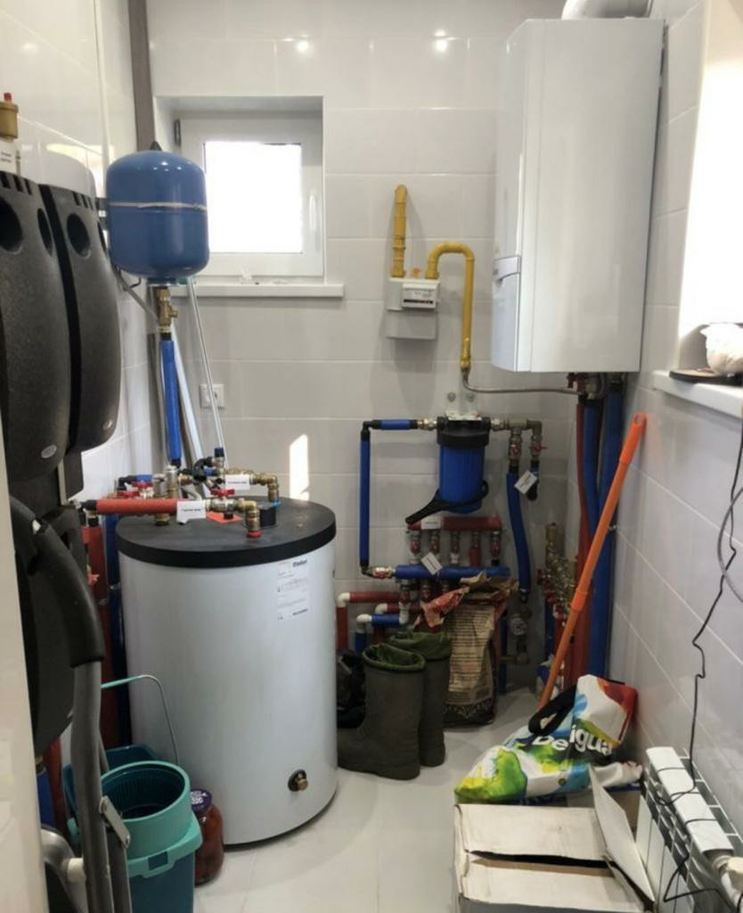 Электричество 15 кВт. три фазы, вся электрика сделана из качественного кабеля ГОСТ, центральные канализация, вода, газ. , в доме газовый котел Vaillant (отопление газовое). На первом этаже водяные тёплые полы, на втором электрические. Установлены радиаторы отопления в каждой комнате, под каждым окном.