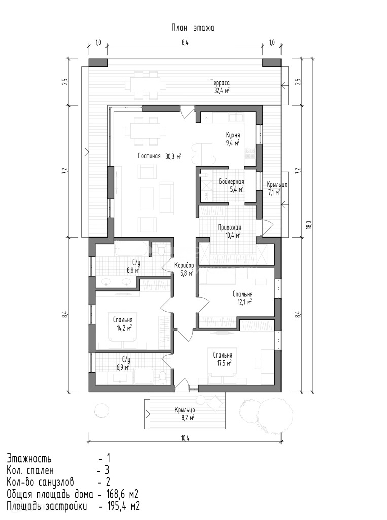 Общая площадь 169 м2