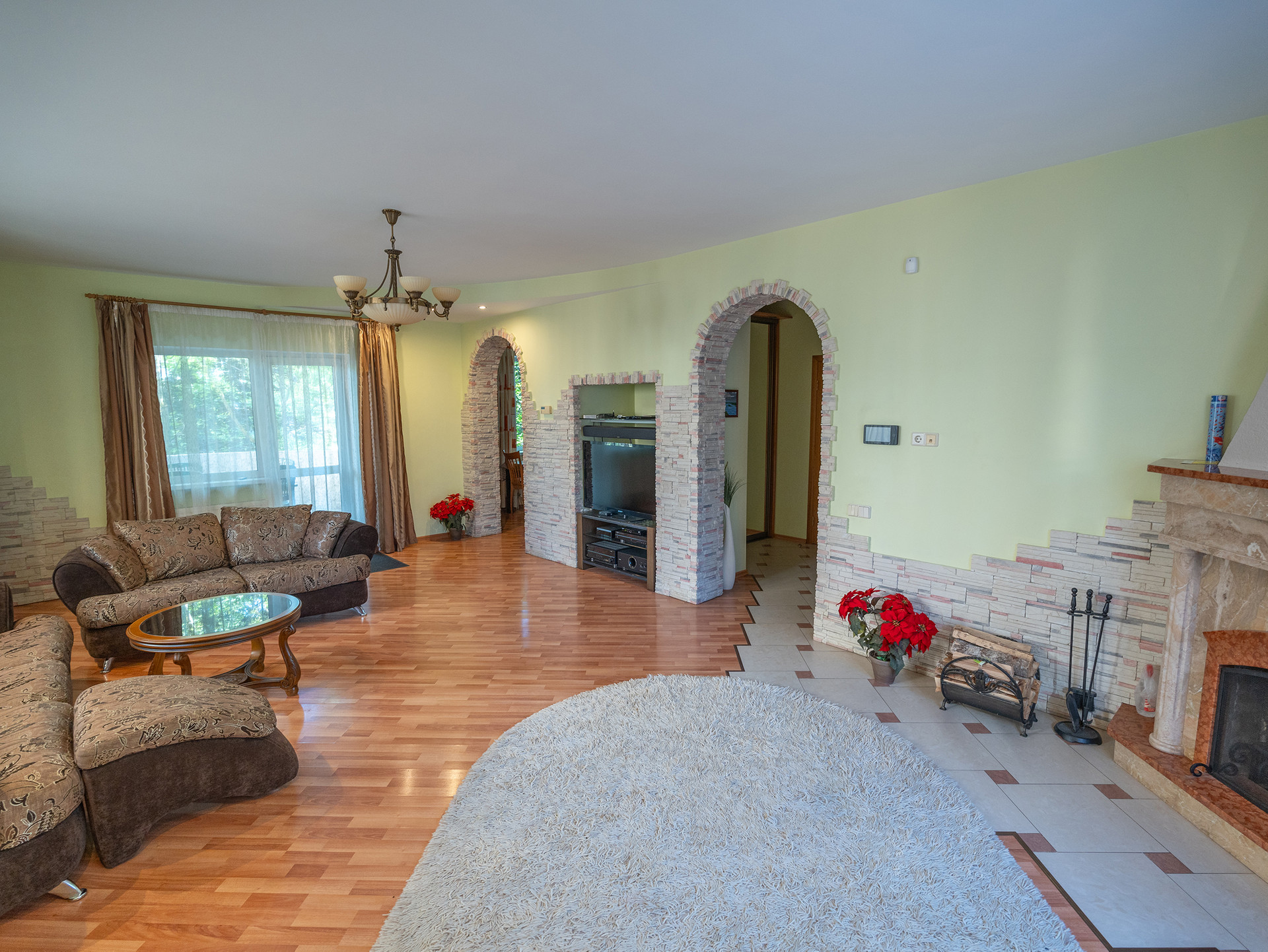 Коммуникации - газ магистральный, эл. 3 фазы 20 кВт, септик, скважина, дополнительно установлена промышленная система очистки воды общего ввода и система обратного осмоса на питьевые краны, сигнализация и тревожная кнопка обслуживаются Росгвардией, видеонаблюдение, спутниковое НТВ+, интернет (выделенная линия по оптике), Wi-Fi роутер покрывает связью весь участок, кондиционер, вывоз мусора осуществляется централизовано. Поселковые сборы всего 25000 рублей в год.
