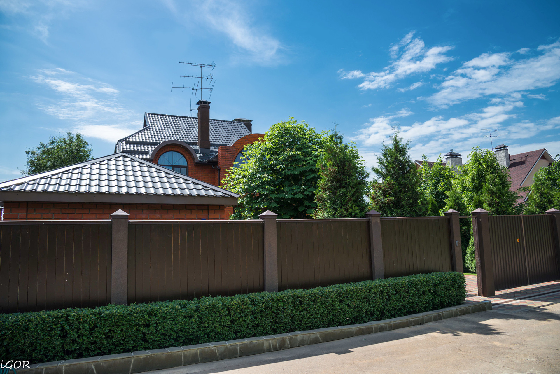 Объявление от собственника. Разумный торг. Уютный семейный коттедж 312 м² на участке 12 соток в обжитом месте Рублево-Успенского шоссе 16 км. Все соседи построились. Продается с мебелью и бытовой техникой. Стены кирпич, перекрытия бетон. Закрытая и безопасная территория. Участок зеленый, террасирован в 2-х уровнях. Дорожки выполнены брусчаткой и натуральным гранитом. Подъезд к дому шоссейный, забор глухой, улица закрытая (нет сквозного проезда), парковка возле дома до 4 а/м и во дворе до 2 а/м, также есть теплый гараж. На участке русская баня с помывочным отделением, парной и зоной отдыха, отдельно есть домик для прислуги. Оба строения зимние. Также есть гриль-домик и стационарный мангал. Респектабельные соседи, тихо и уютно, нет шума от дороги. Все ворота автоматические с кнопками на одном брелке. Рядом магазин 'Перекресток', аптека, школа, фитнес, детская клиника, остановка автобуса в Москву и Одинцово, недалеко въезд на платную трассу.