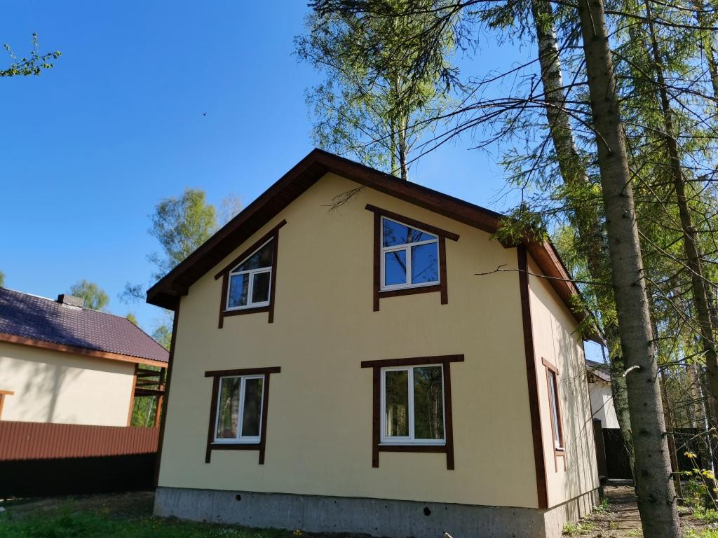 Продаю загородный коттедж 155 м2 с земельным участком площадью 6 соток - 38 км от МКАД на стадии строительства по договору подряда. Срок строительства 3 месяца, есть готовый  дом 150 м2 под отделку с участком 6 сот. стоимостью 5,7 млн. рублей. Строительство дома  возможно на участке от 6 до15 соток, под застройку большой выбор земельных участков в КП "Горки-город Минеево". Дом 2-этажный с удобной планировкой из газо-силикатных блоков, без внутренней отделки (возможна отделка под ключ). В доме 5 комнат (40 кв.м кухня-гостиная, 4 спальни от 14 кв.м до 17 кв.м, 2 с/у), электричество 15 кВт, вода и канализация (септик ЮНИЛОС) заведены в дом, магистральный газ по границе. По периметру участка забор с воротами и калиткой. Дома регистрируются как жилые с присвоением адреса и номера (прописка). Хороший подъезд круглый год. Асфальтированный подъезд до участка.  Дом расположен в живописном месте с огороженной территорией.  В районе 5 км находятся школа, д/сад, магазины, отделение Сбербанка, медпункт, ж/д станция Морозки, горнолыжный клуб Л. Тягачева, Сорочаны, парк Яхрома, Волен, парк Лисья нора, Экстрим-парк, гольф-клуб, два водохранилища и канал им. Москвы. 300 метров до автобусной остановки до ж/д станция Морозки, Прекрасное тихое место для загородного отдыха и постоянного проживания. Возможна ипотека.