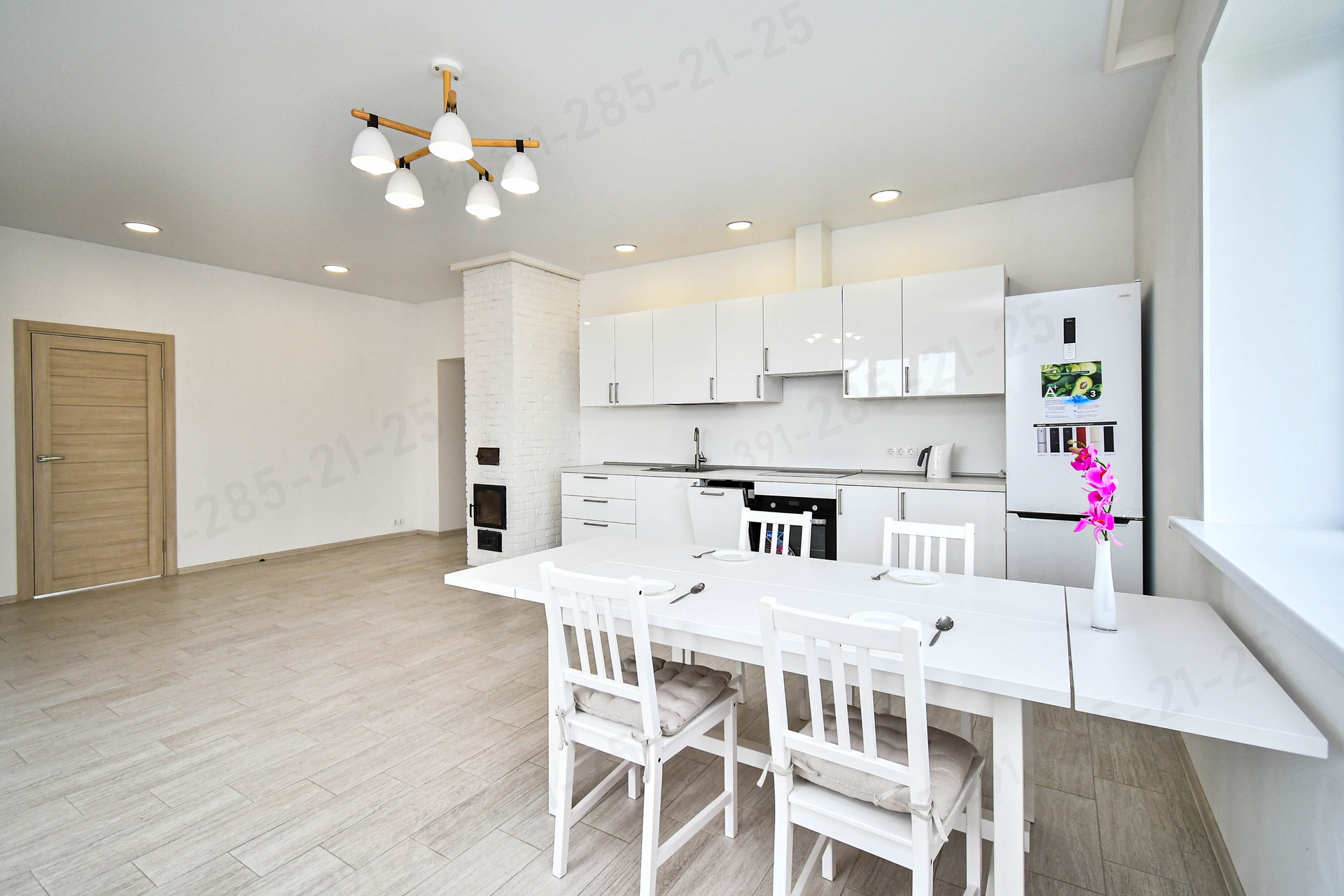 - Просторная кухня-гостиная (укомплектована новой мебелью и техникой, а делает гостиную более уютной – настоящая печь, наполняя дом теплом и особым очарованием).